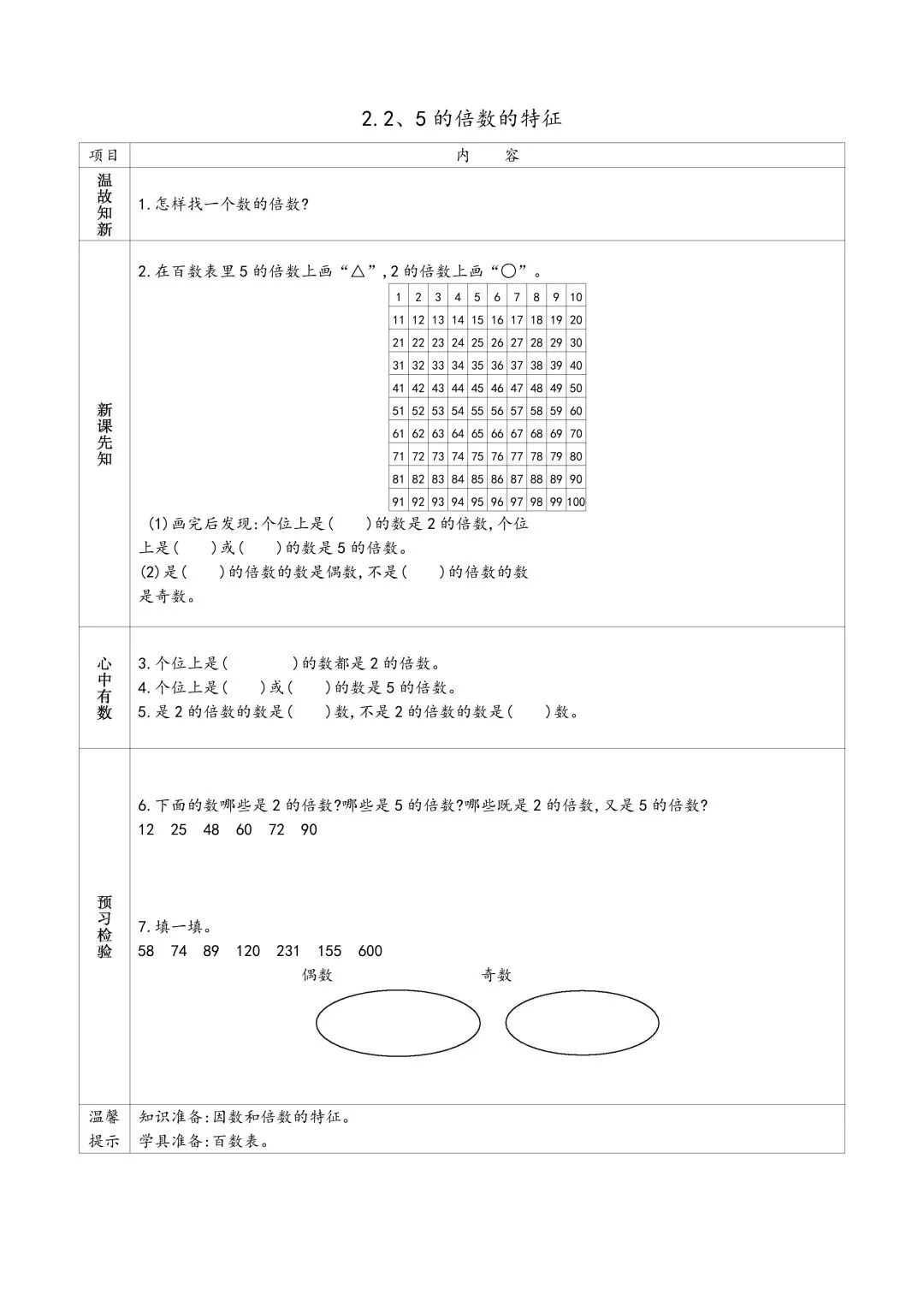 《苏教版五年级下册数学预习单 有答案》