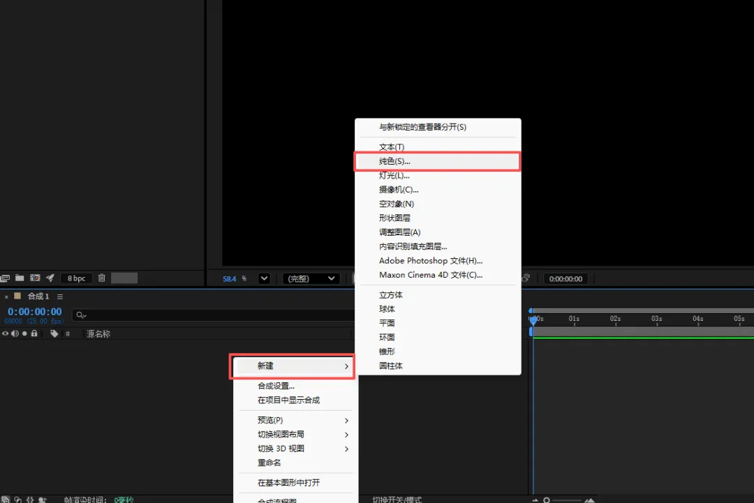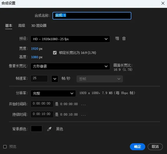 打开 Ae,新建合成,可以直接新建一个纯色层作为文生图的生成层。