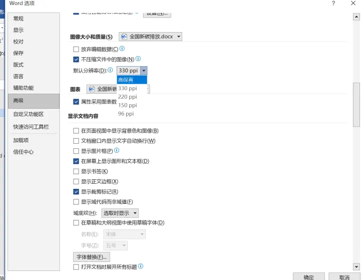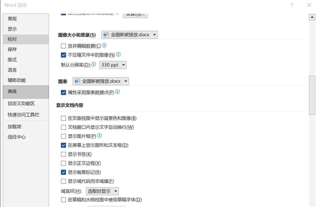 问题表现:当我把其他软件导出的600dpi的图件(大概1-2MB)插入word后,在没关闭word时看起来还行,很清晰。关闭word再打开,就发现图件不清晰了,很模糊。原因很简单,word自动压缩了图件。word也是默认压缩的。