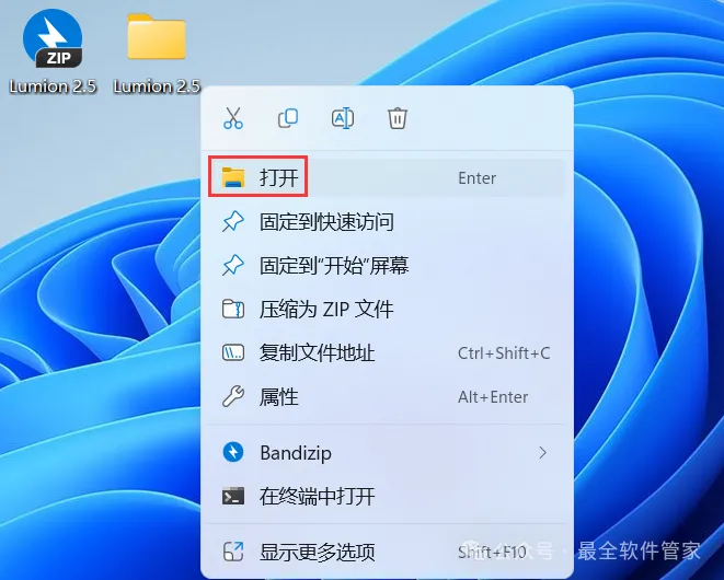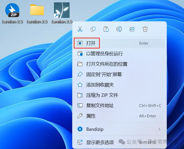 31、回到桌面,右键桌面上的【Lumion 2.5软件图标】,点击【打开】