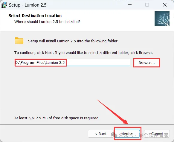 6、软件默认安装在C盘,可自定义更改软件安装位置,这里小编选择安装在D盘;点击【Next】