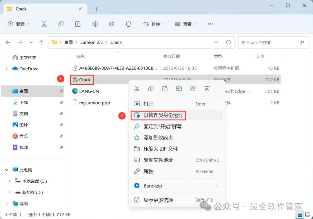 13、回到Lumion 2.5文件夹,找到【Crack】文件夹,右键【打开】它