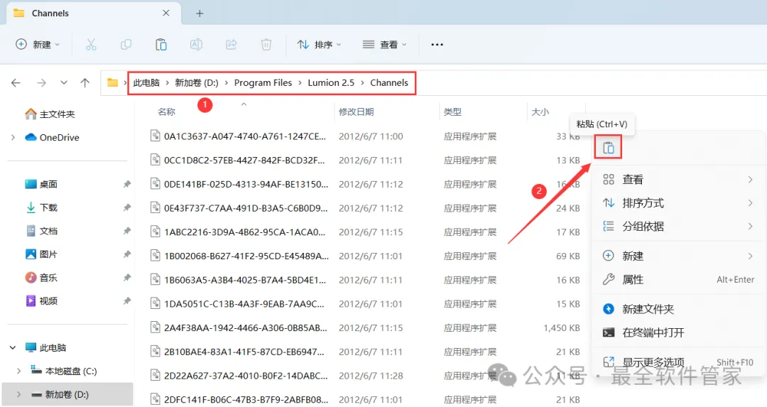 29、打开路径:D:\Program Files\ Lumion 2.5.1\Channels,再右键文件夹的空白处,点击【粘贴按钮】