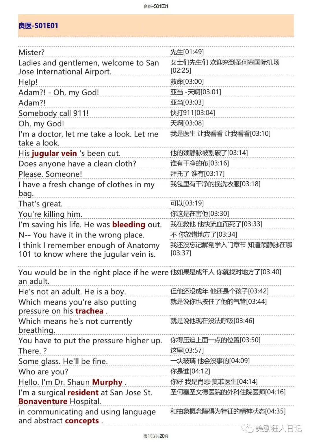 良医台词剧本下载pdf(双语精排版)全7季+mp3+单词注释