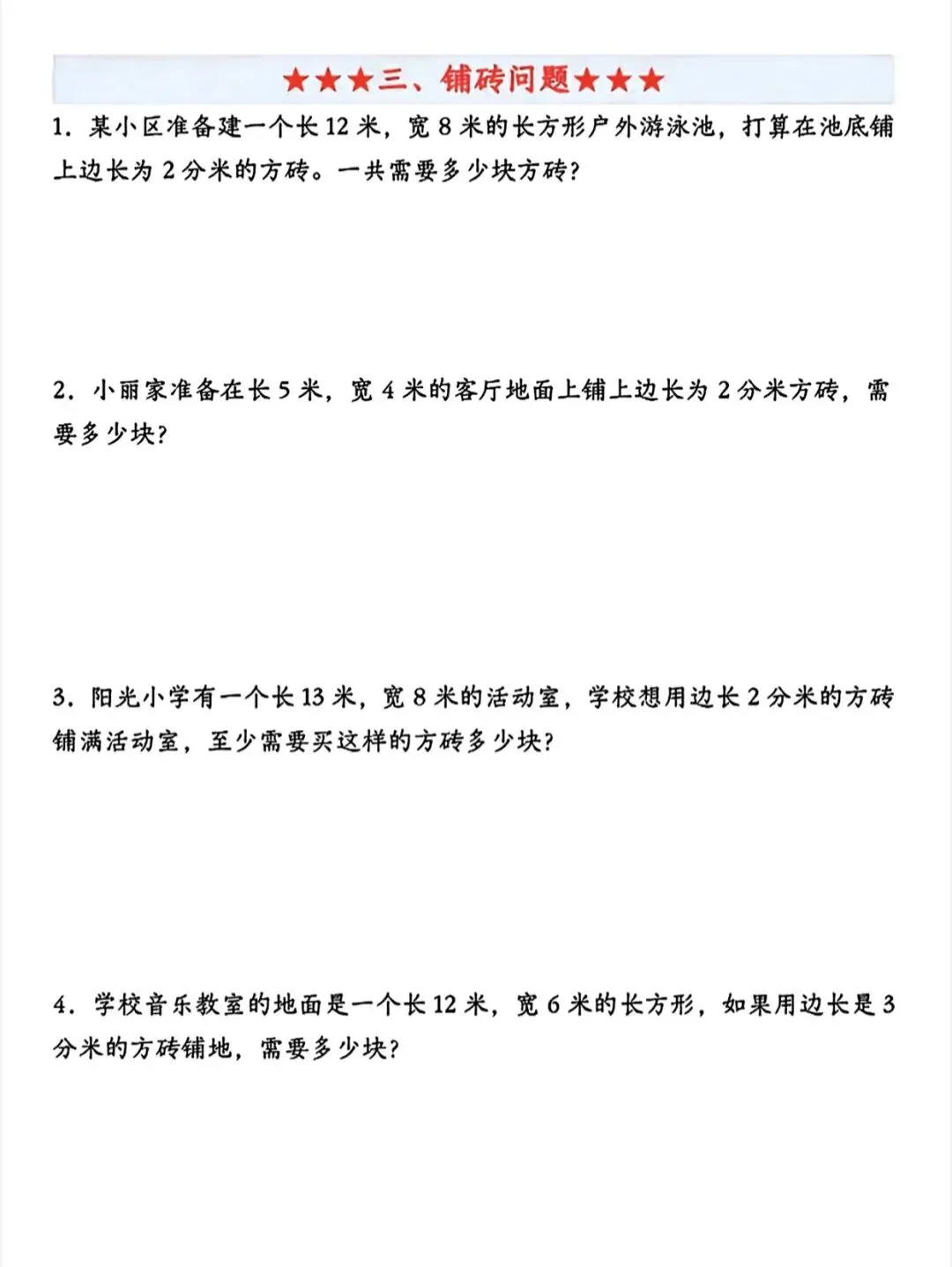 三年级下数学七大专项练习|可打印