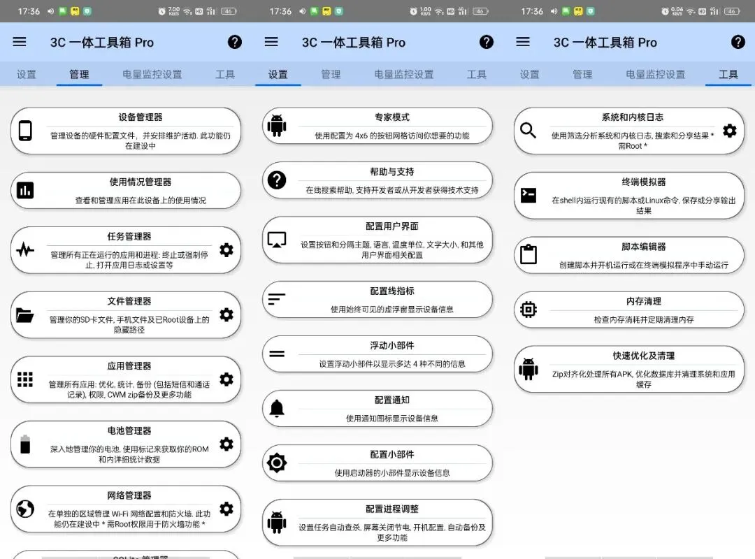 **简介:** 3C一体工具箱pro是一款功能极其强大的系统管理工具,被称为“玩机必备”的全能工具箱。它提供了设备管理器、文件管理器、应用管理器、电池管理器、网络管理员、任务管理器、CPU管理器等十余项深度管理功能。支持隐藏菜单项、编辑主屏幕、自动备份应用、创建定时任务、监控网络流量、控制CPU核心设置以及系统日志调试等高级特性。无论是技术专家还是初学者,都能通过它优化设备性能、延长电池寿命并精确控制应用程序。无广告,界面简约操作简单,是已获取root权限用户的得力助手。