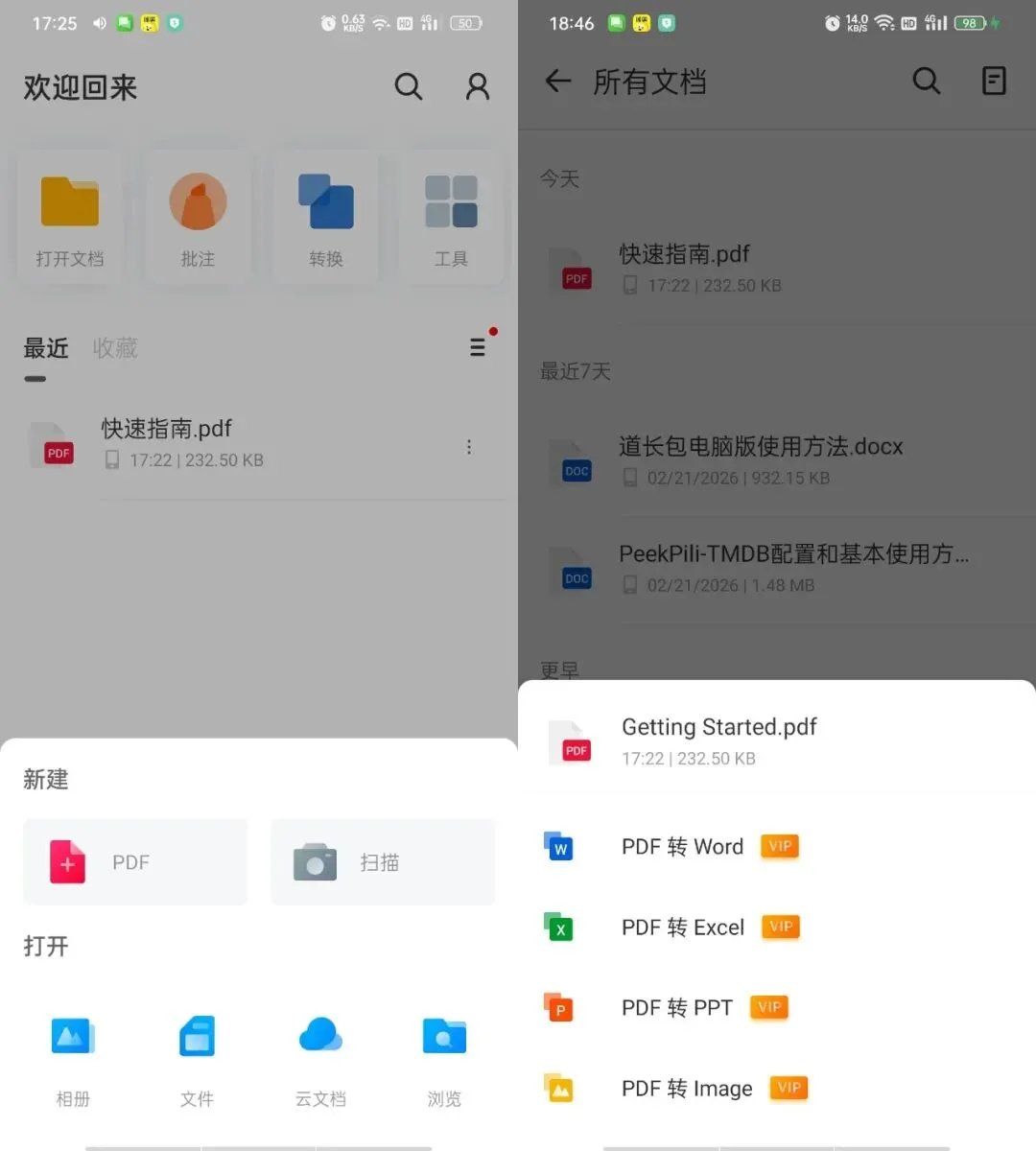 **简介:(邮箱注册登录,注册时地区选中国香港。格式转换速度可能会有点慢) PDF Reader Pro是一款高效全能的PDF编辑器与阅读器。它支持PDF的阅读、注释、编辑、填写表单、签署、合并拆分、加密保护等全方位的处理功能。专业版还提供OCR文本提取(从图片或扫描的PDF中提取文本)、自定义参数压缩、比较两个PDF文件的差异、创建可填写的Adobe PDF表单、TTS文本转语音、分屏视图查看、批量加密/清除PDF密码等高级功能。支持Android、iOS、Mac、Windows多平台,是个人和企业处理PDF文件的强大助手。