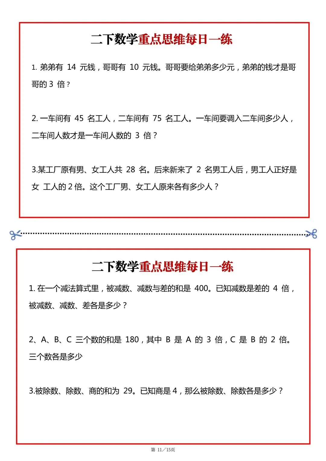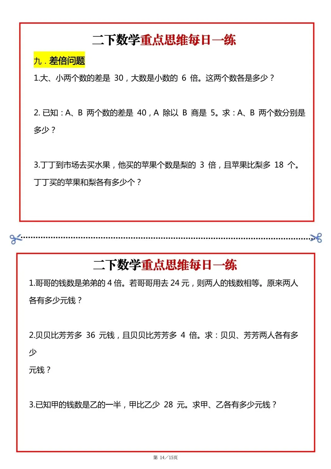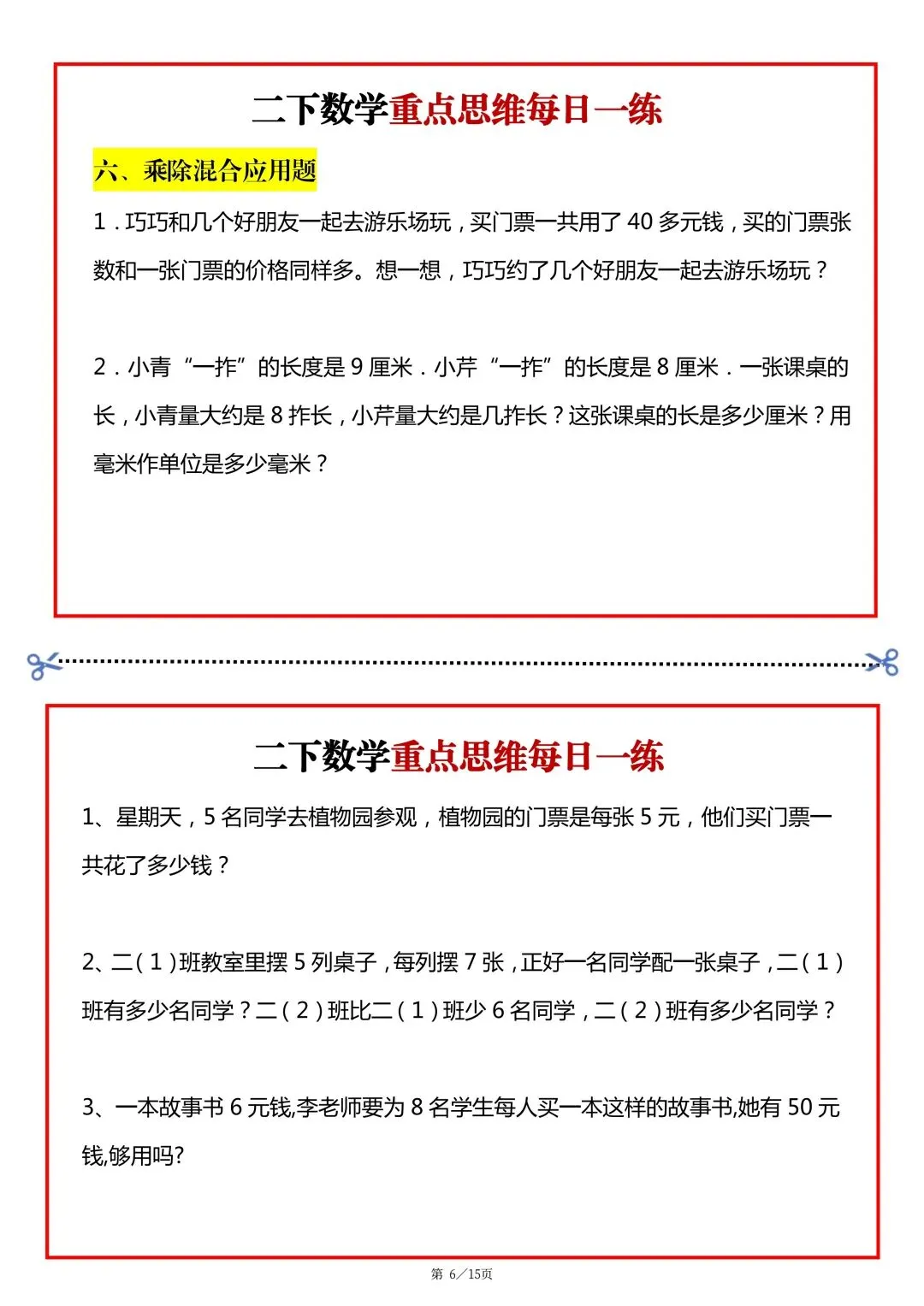 26春二年级下册数学重点思维题每日一练 可下载可打印