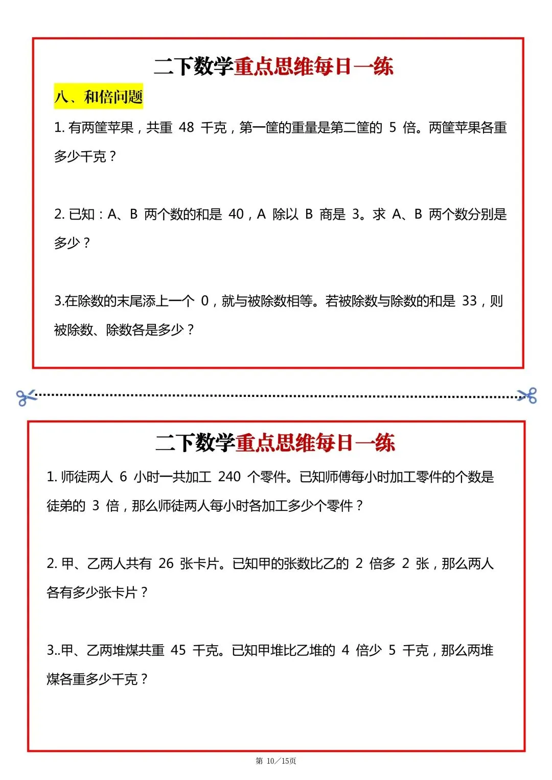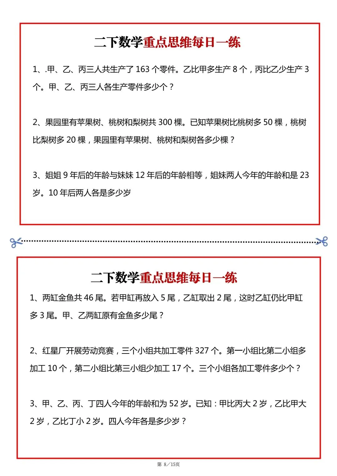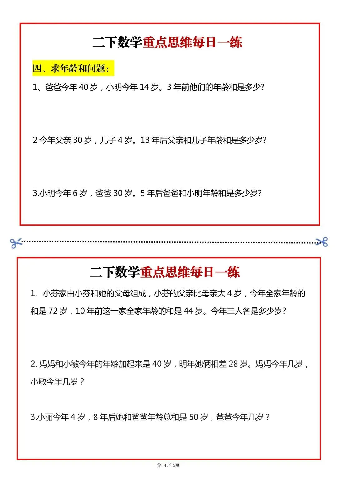 26春二年级下册数学重点思维题每日一练 可下载可打印