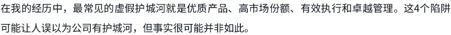 护城河理论中提到4个陷阱——好产品、高份额、有效执行、卓越管理,帮助我们更理性看待识别当下的 AI 大模型与产品。