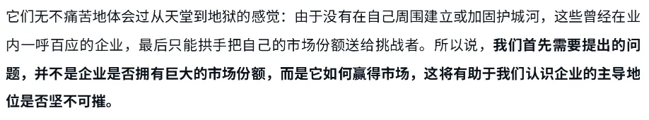 值得注意的是,护城河是动态的。新的技术、新的政策、资源流通等因素可能改变「价值创造与分配」的规则,让旧有的壁垒失效。