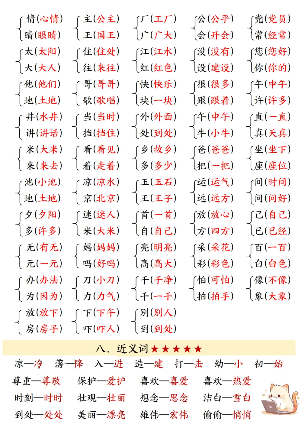 一年级(下)语文知识汇总-可打印 大家好,我是你们的老朋友学易通。 2025年的寒假即将结束,一年级的小朋友们马上要迎来下学期的课程了。今天给大家分享一份一年级语文下册知识汇总,希望能帮助到一年级小朋友提前了解学习内容,一起看内容: 因为篇幅问题,今天的分享就到这里了,有想要完整资料的朋友可以菜单资料库自取或者点击下方卡片。关注我,每天带给你不一样的学习资料~ (ps:在小程序中通过签到和分享可以获得积分哦!)