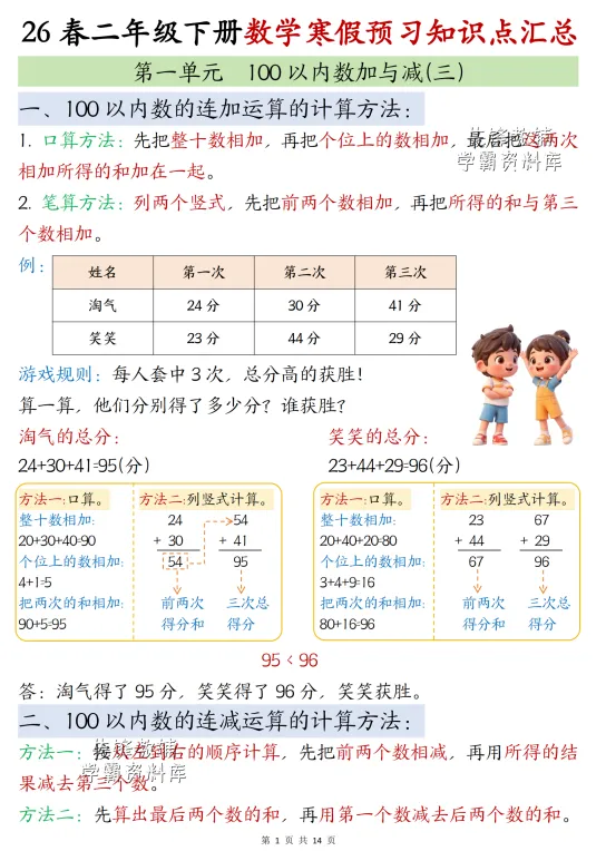 26春二年级寒假预习知识点汇总 北师版 完整电子版可下载打印