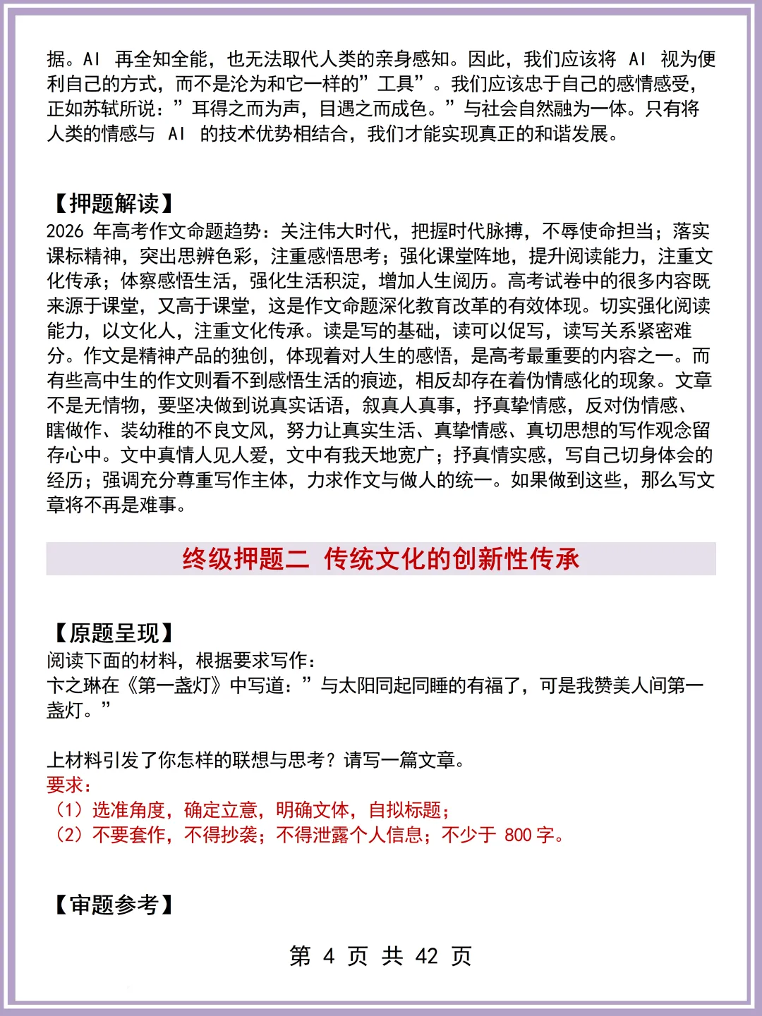 2026最新版:高考考前作文押题素材(可打印)还不快收藏!