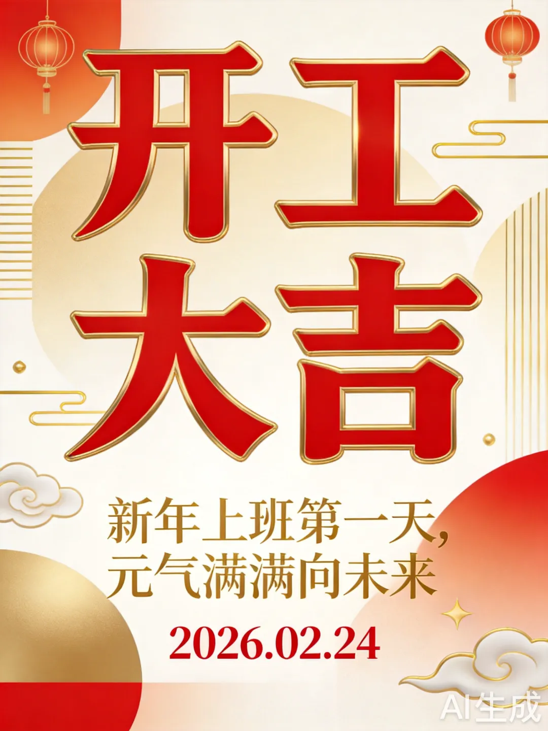 今天是春节后上班的第一天,帮我生成一张开工大吉的海报,不要任何人物形象。