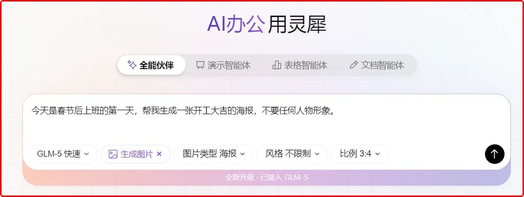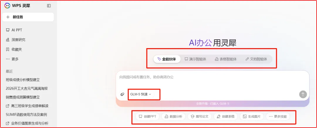 这里首先要说的是WPS灵犀,在春节期间,WPS灵犀迎来了一波更新,成功接入了GLM5大模型。