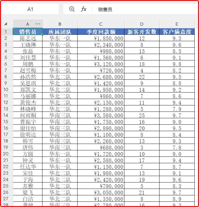 这是一份销售数据表,现在用升级后的WPS灵犀,不仅可以在原数据表之外,自动创建一份数据分析表,而且还能自动写公式,自动汇总数据,并在表格里生成图表。