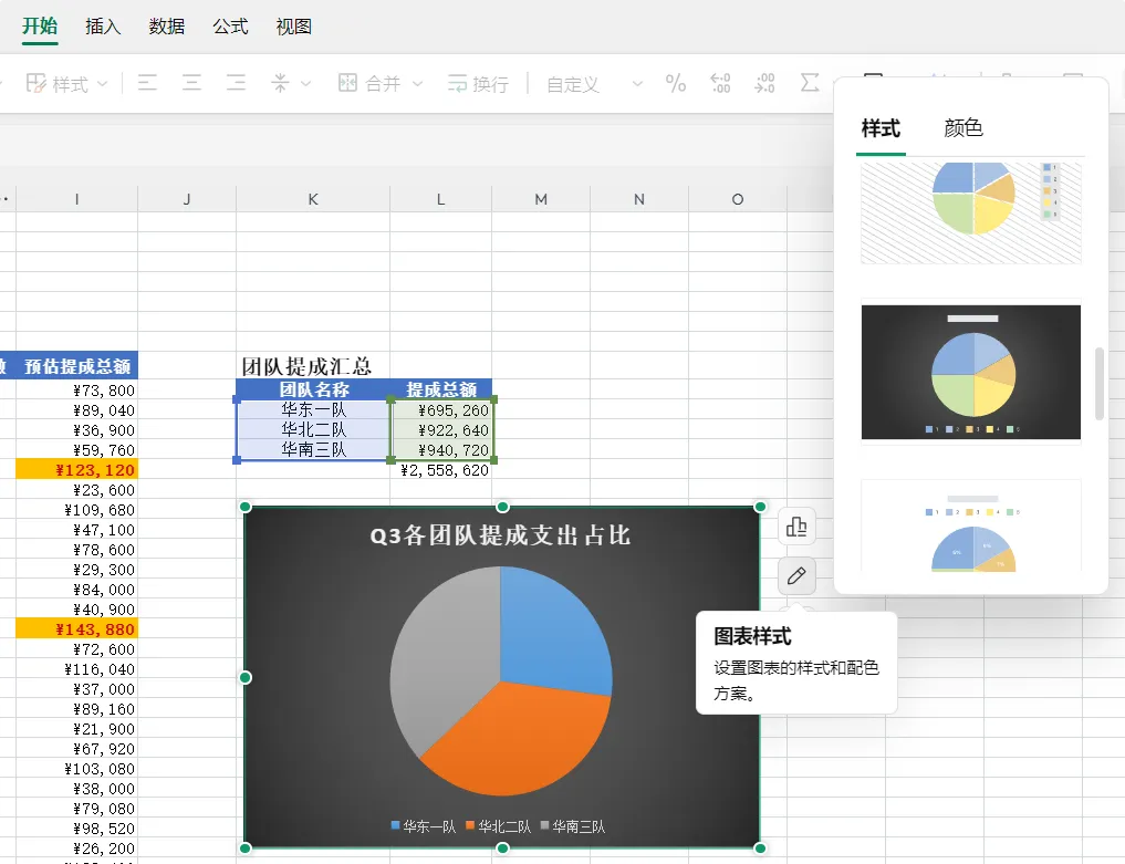 更让我惊喜的是,现在生成的图表,在表格里可以直接进行样式和细节元素的编辑。就像我们之前手动创建数据图表的时候,操作是一样的。