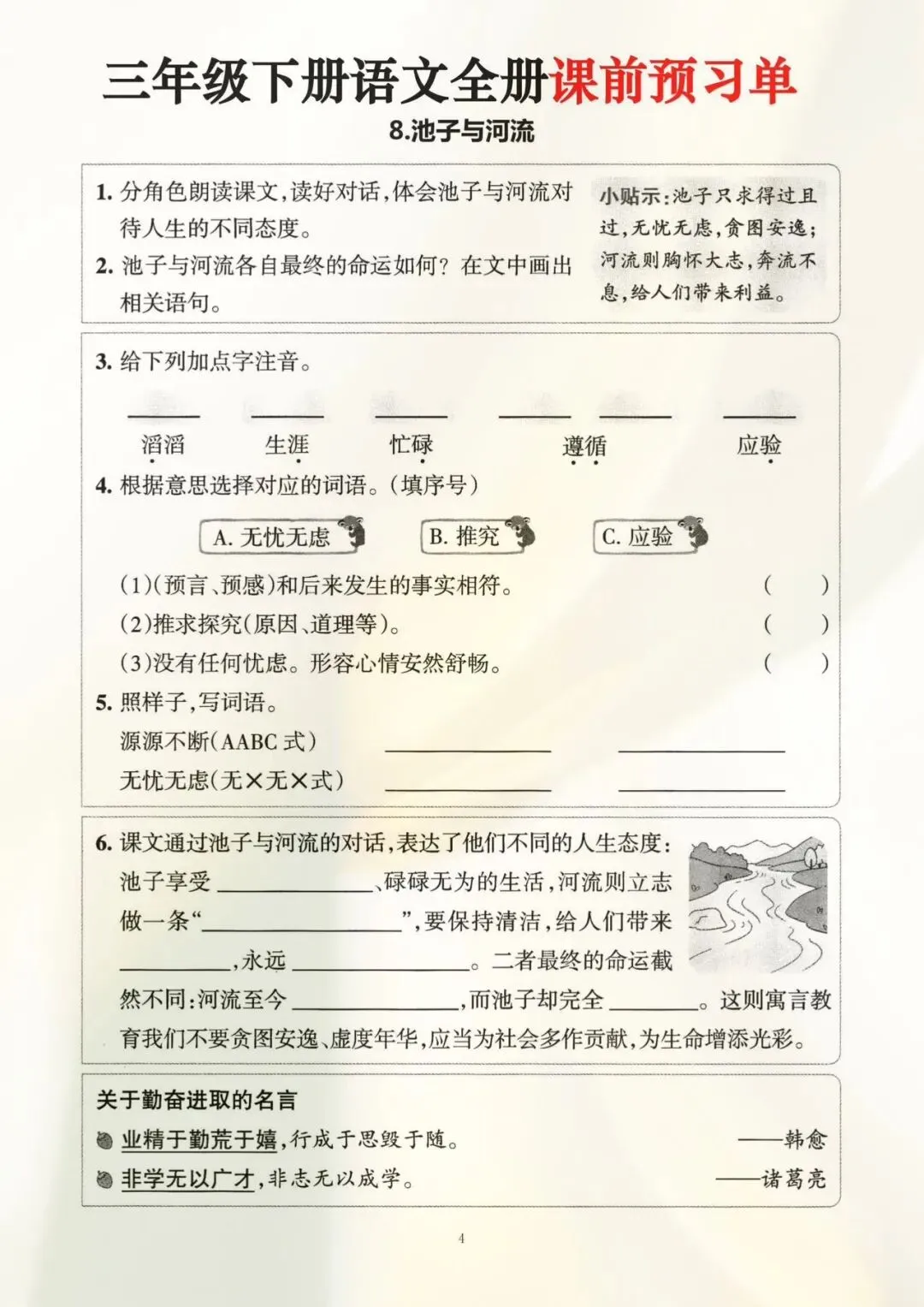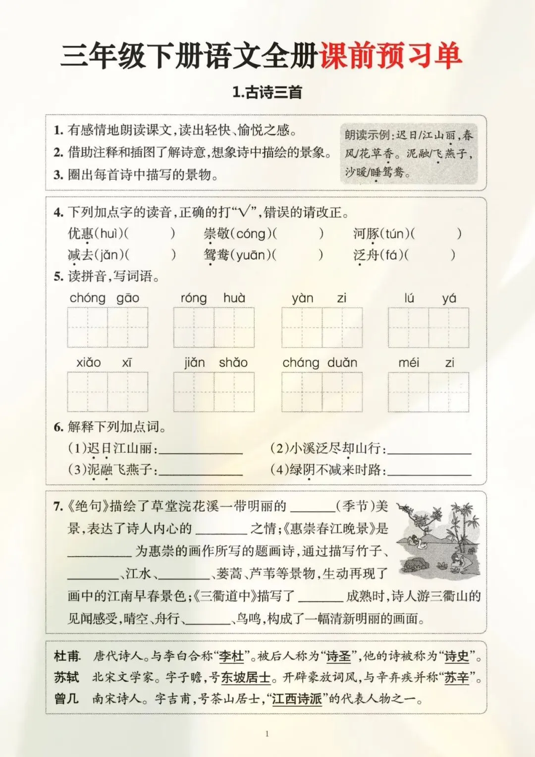 三年级是语文学习的“分水岭”,课前预习就是孩子的“核心竞争力”!这份量身定制的三年级下册语文全册课前预习单,覆盖课本全册知识点,从古诗、课文到习作,一课一练,精准破解预习难题。