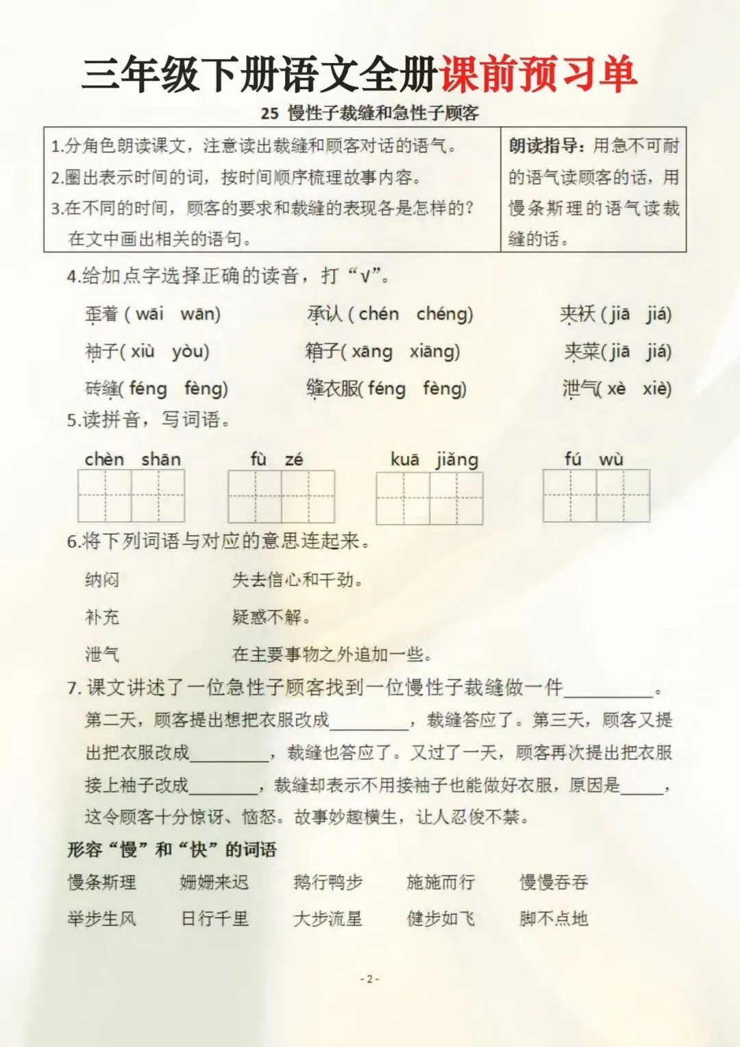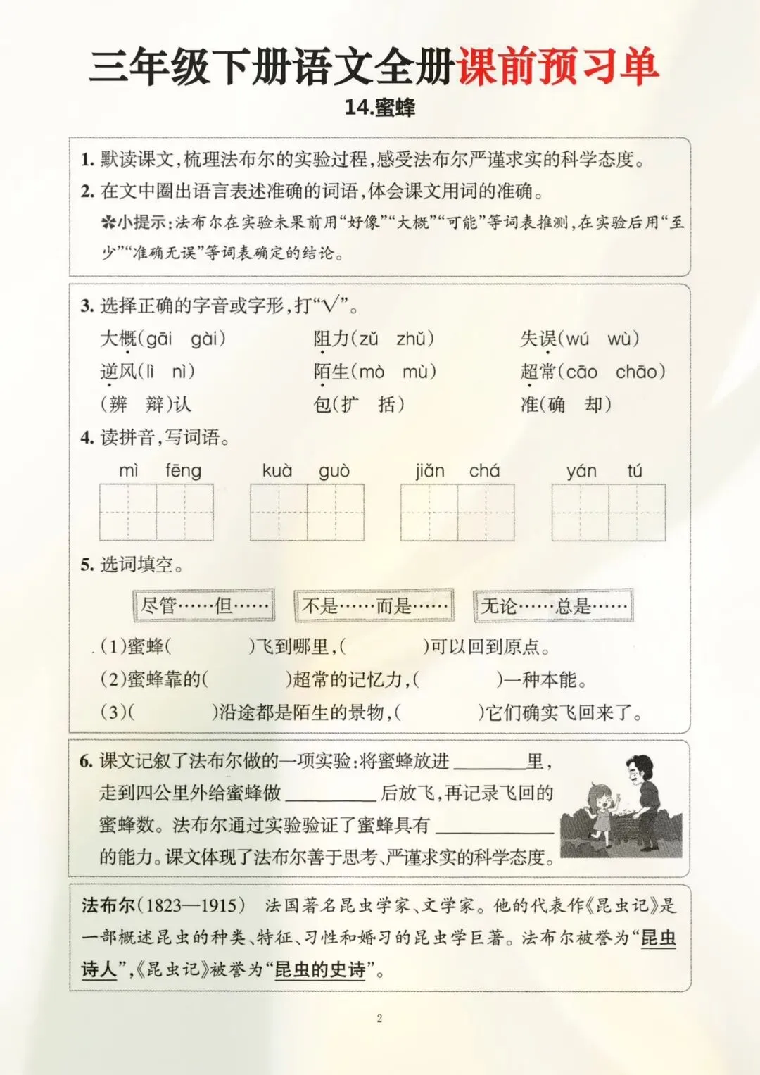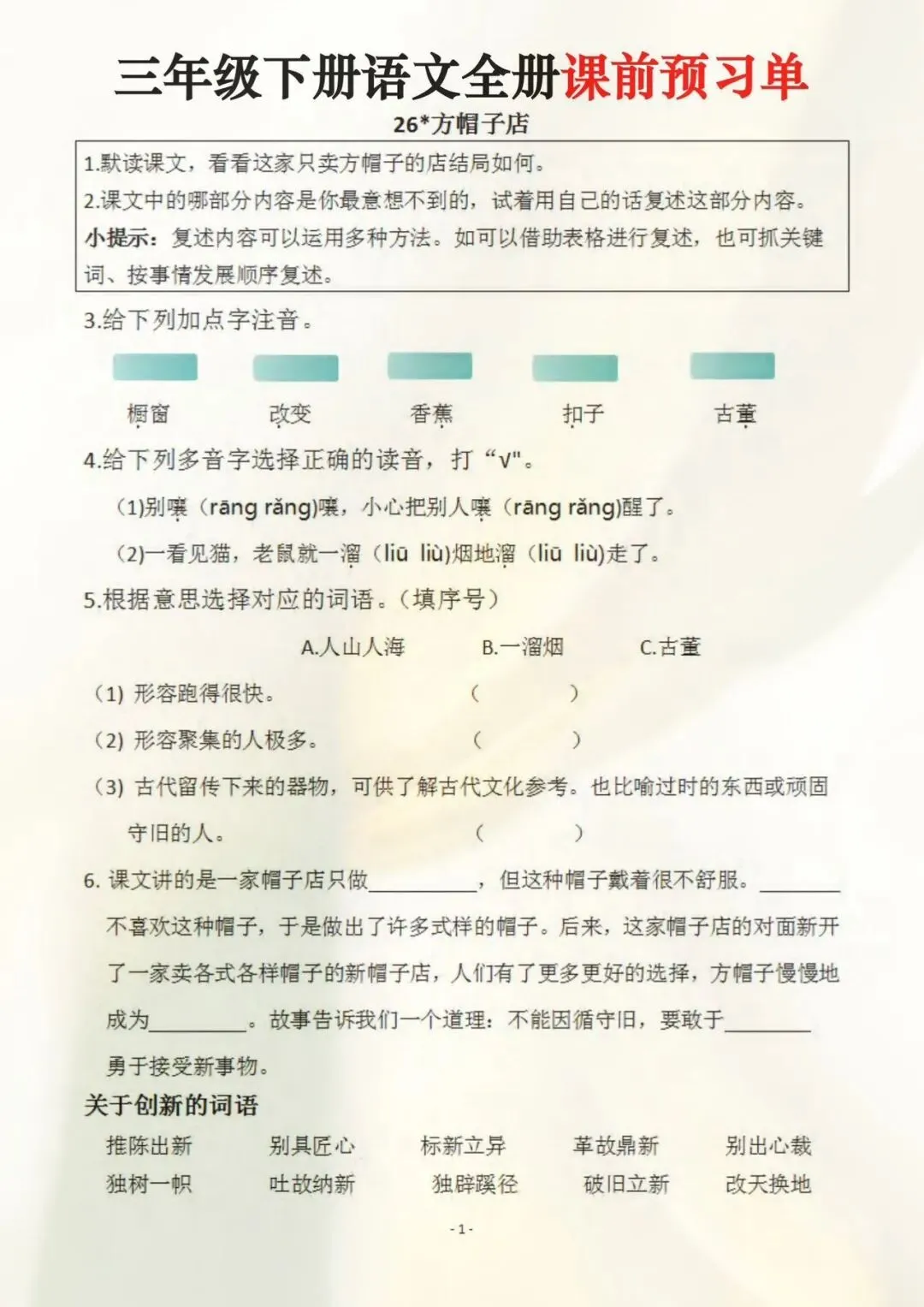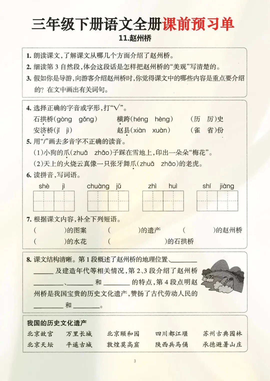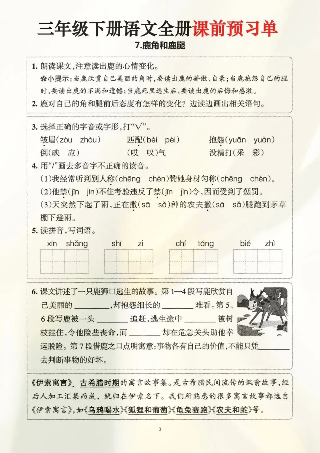 三年级下册语文全册课前预习单(电子版可打印)