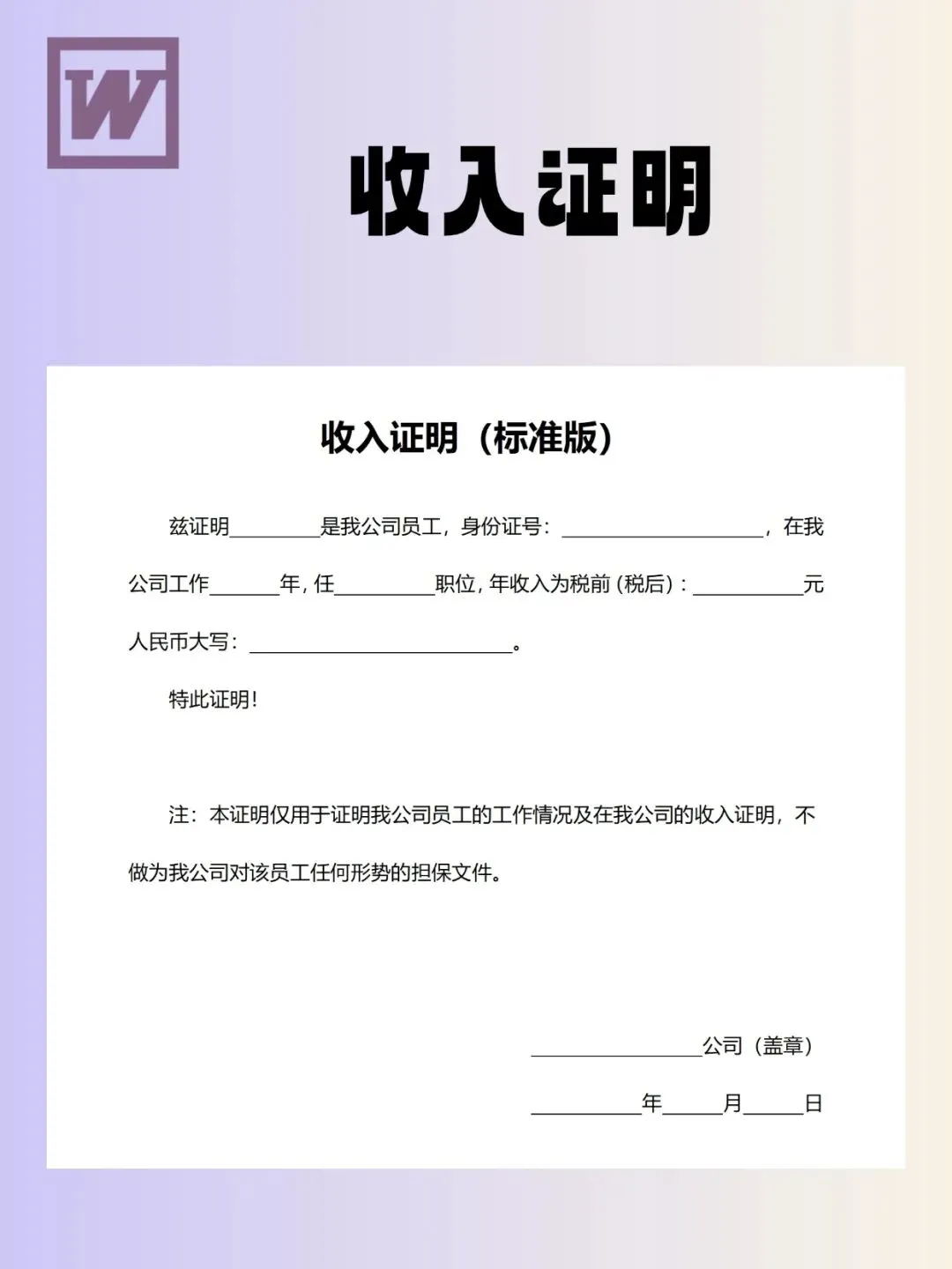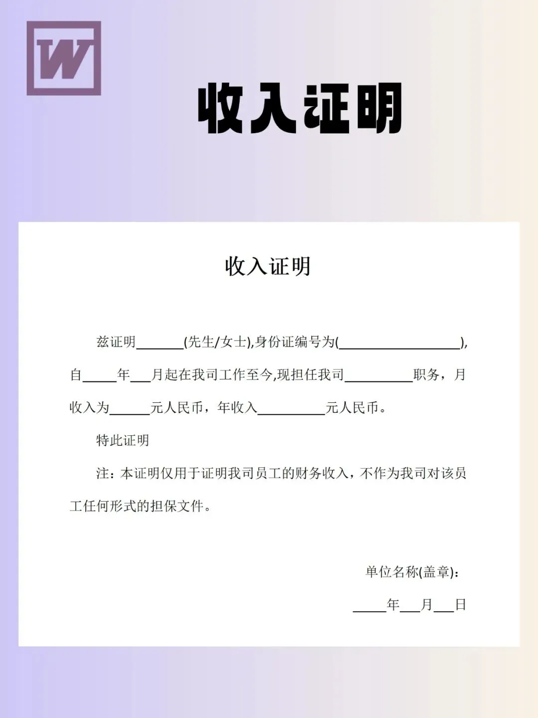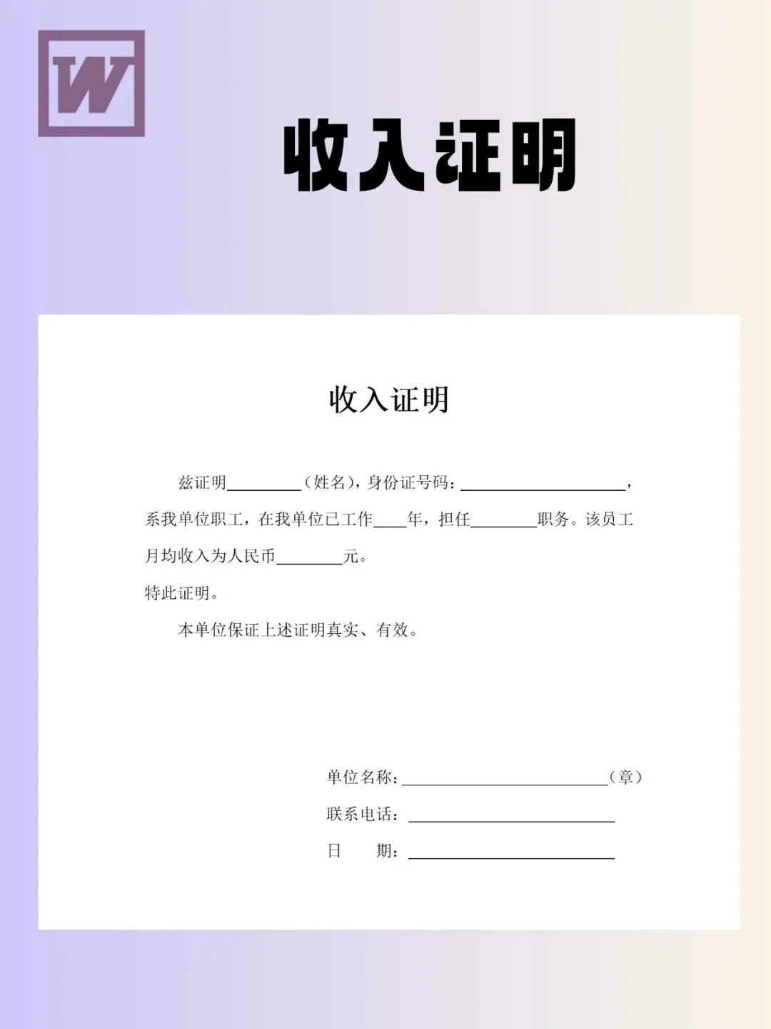 收入证明模板