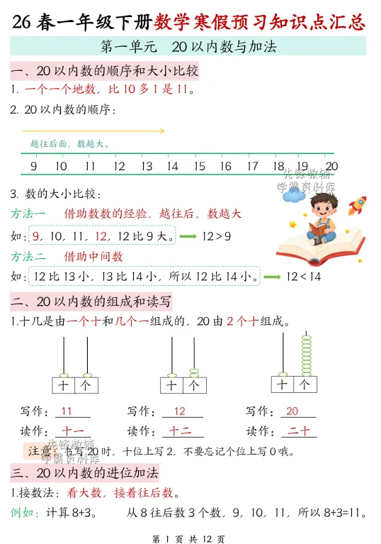 26春一年级寒假预习知识点汇总 北师版 完整电子版可下载打印