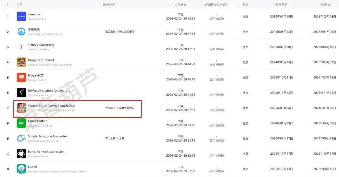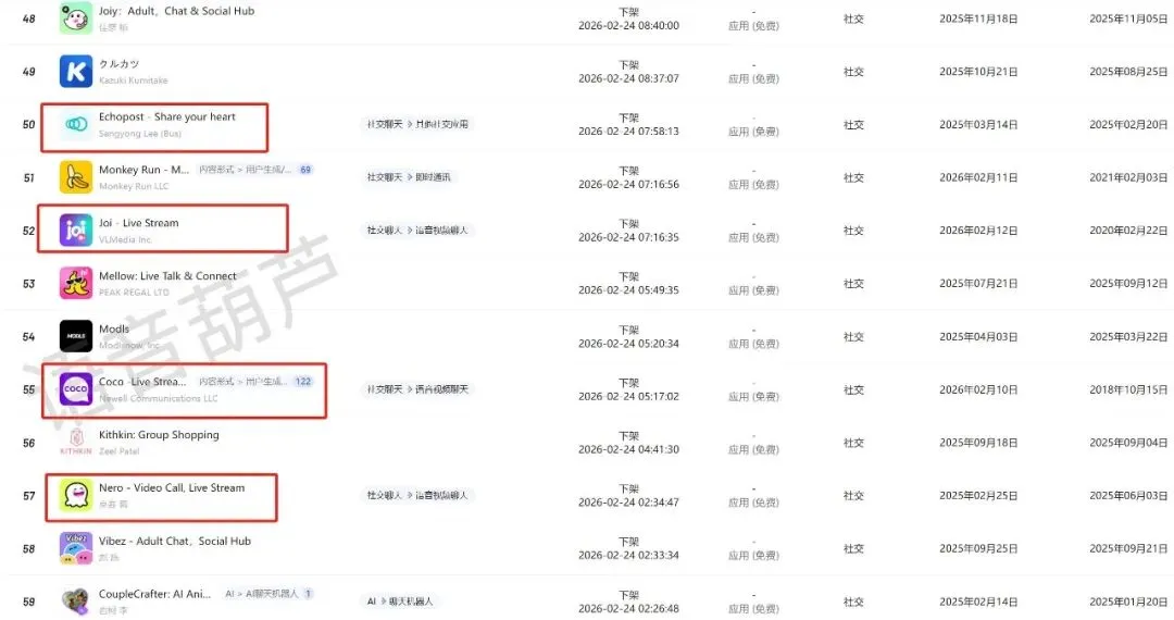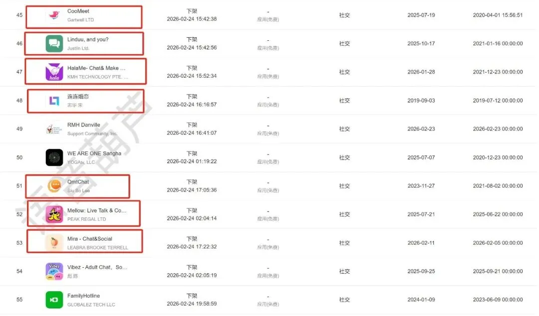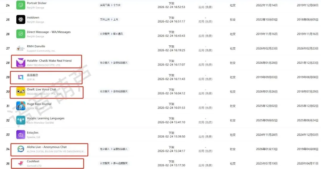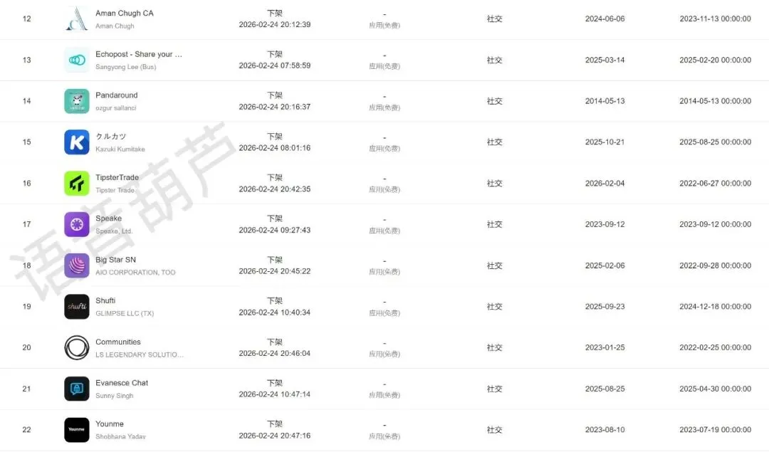就在2026.02.24,百余款出海社交类 App一夜大面积下架!