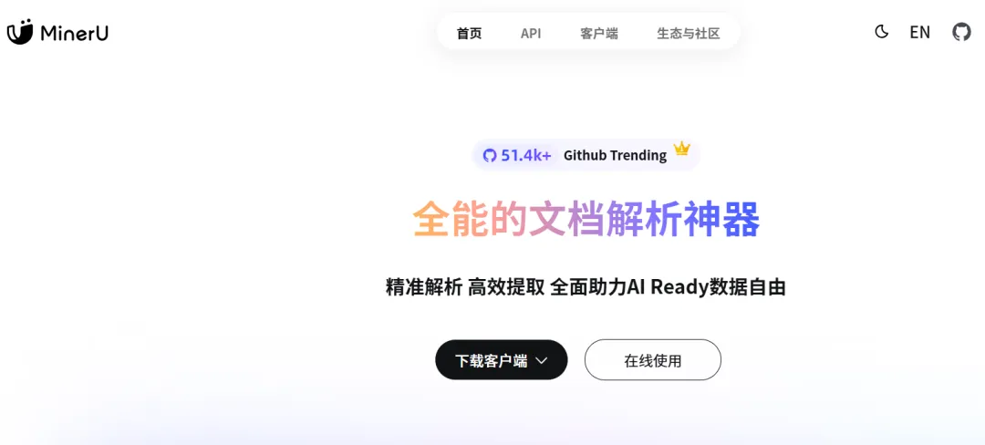 MinerU 是一款面向开发者与科研用户的 PDF 结构化解析工具,专注于将 PDF 文档高质量地转换为机器可读格式(如 Markdown、JSON 等),以便于后续的检索、分析与二次加工。MinerU 起源于「书生·浦语」大模型预训练过程,核心目标是解决科技文献中复杂版式、符号与公式的高质量解析问题,在大模型时代为科研与工程应用提供可靠的数据基础。