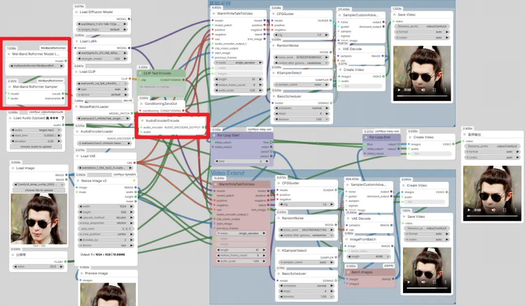 说明:仅将输入的音乐进行人声分离,之后将人声输入到 AudioEncoderEncode 来驱动人物口型,其他地方没有变化。