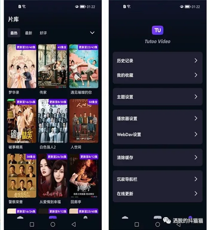 下方导航栏有首页,片库和我的板块