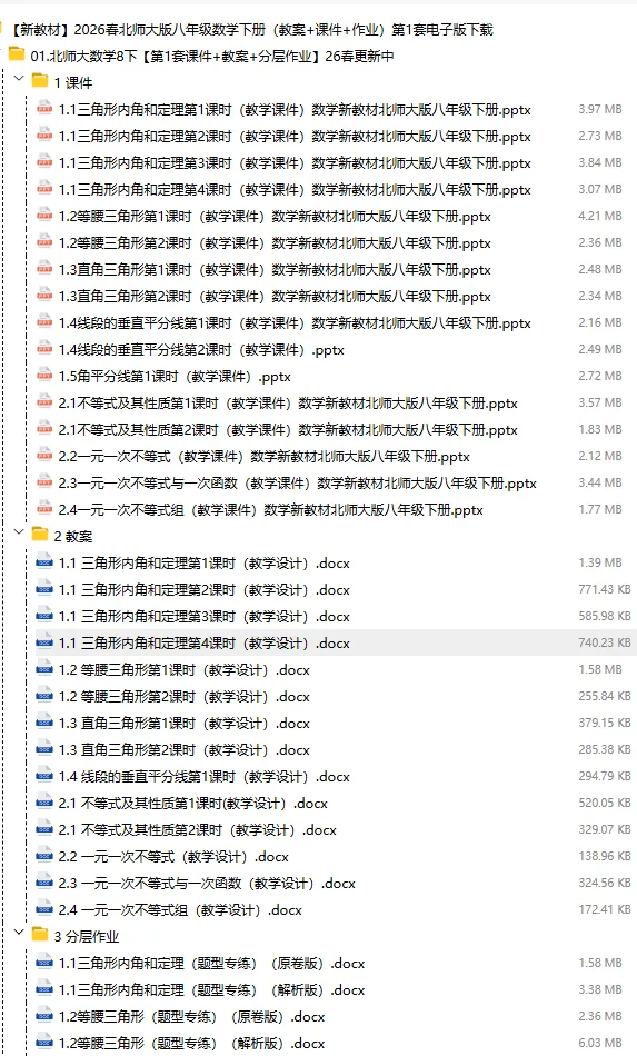 【新教材】2026春北师大版八年级数学下册(教案+课件+作业)第1套下载