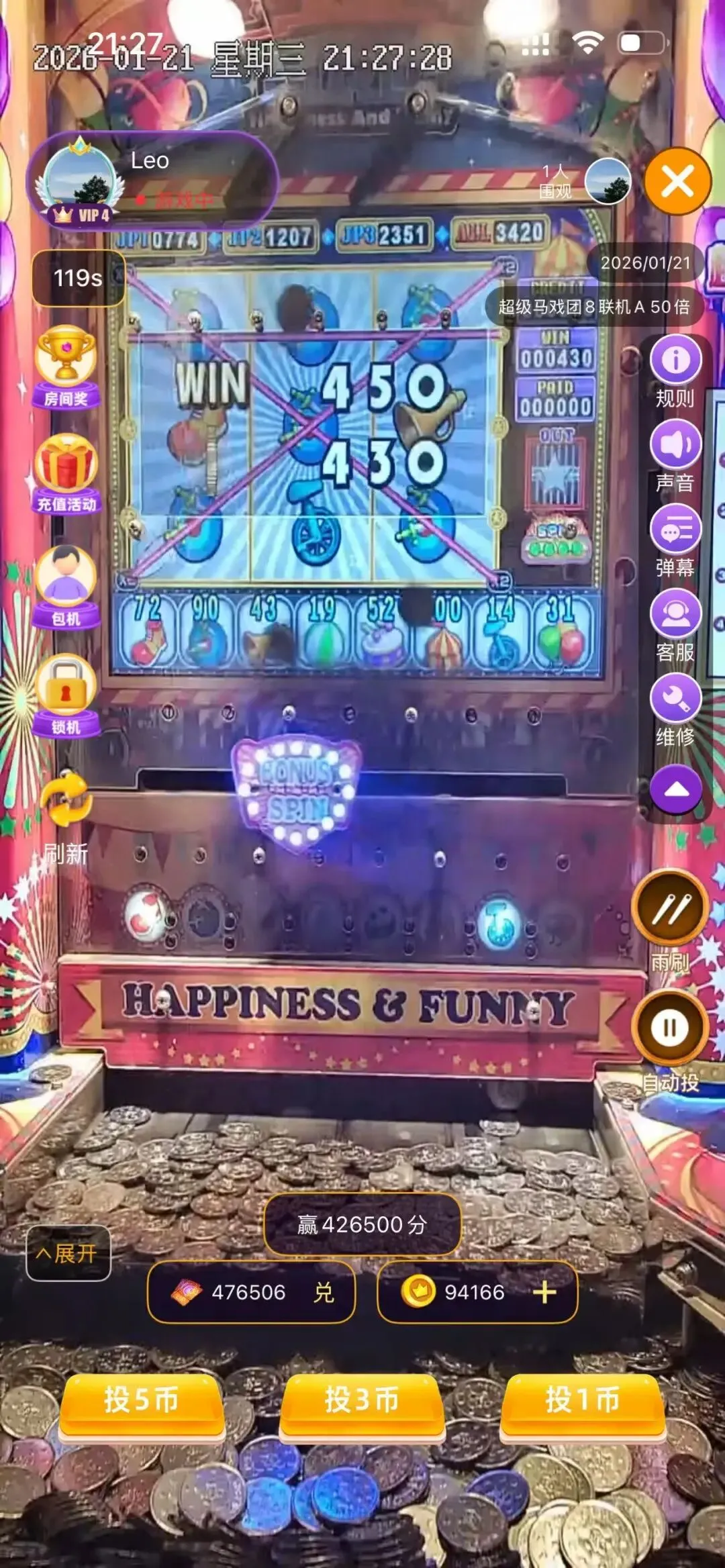 推币机马戏团APP小程序入口:线上电玩城经典之作,推币机登录送10000币