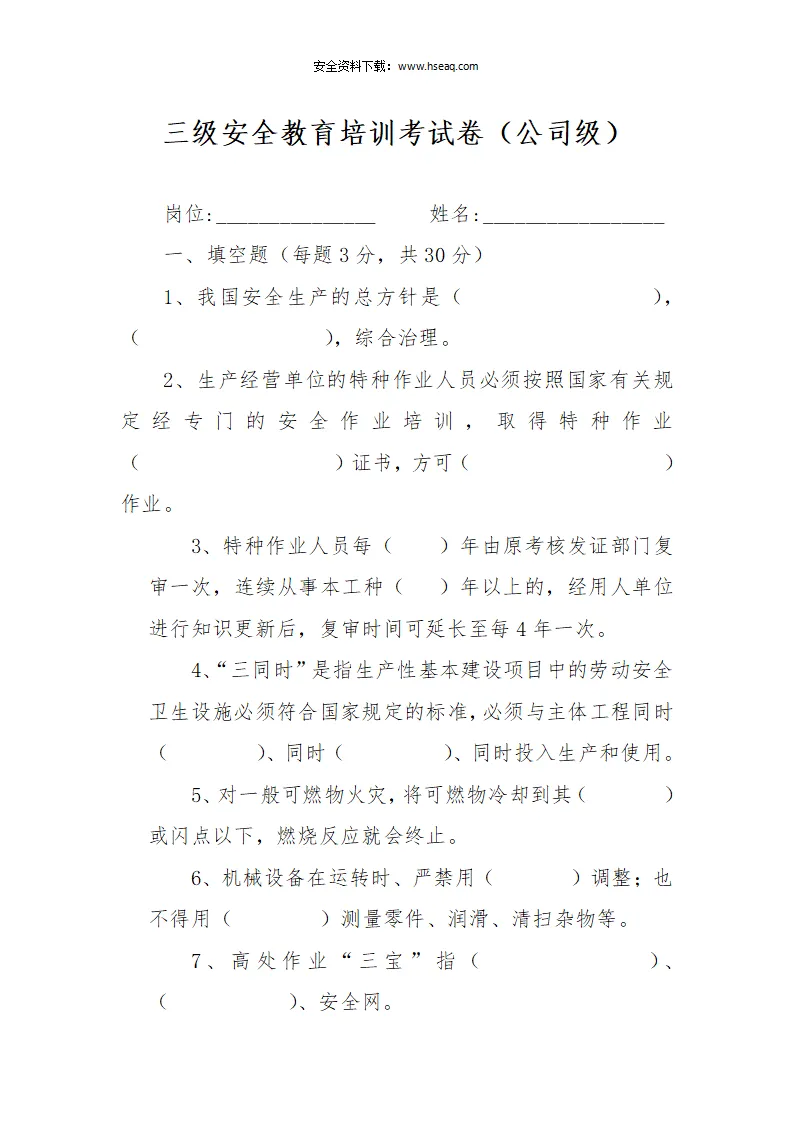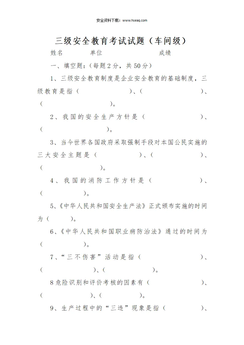 本站文章均为手工撰写未经允许谢绝转载:夜雨聆风 » Word |【12】68-三级安全教育培训考试试卷及答案(公司车间班组)