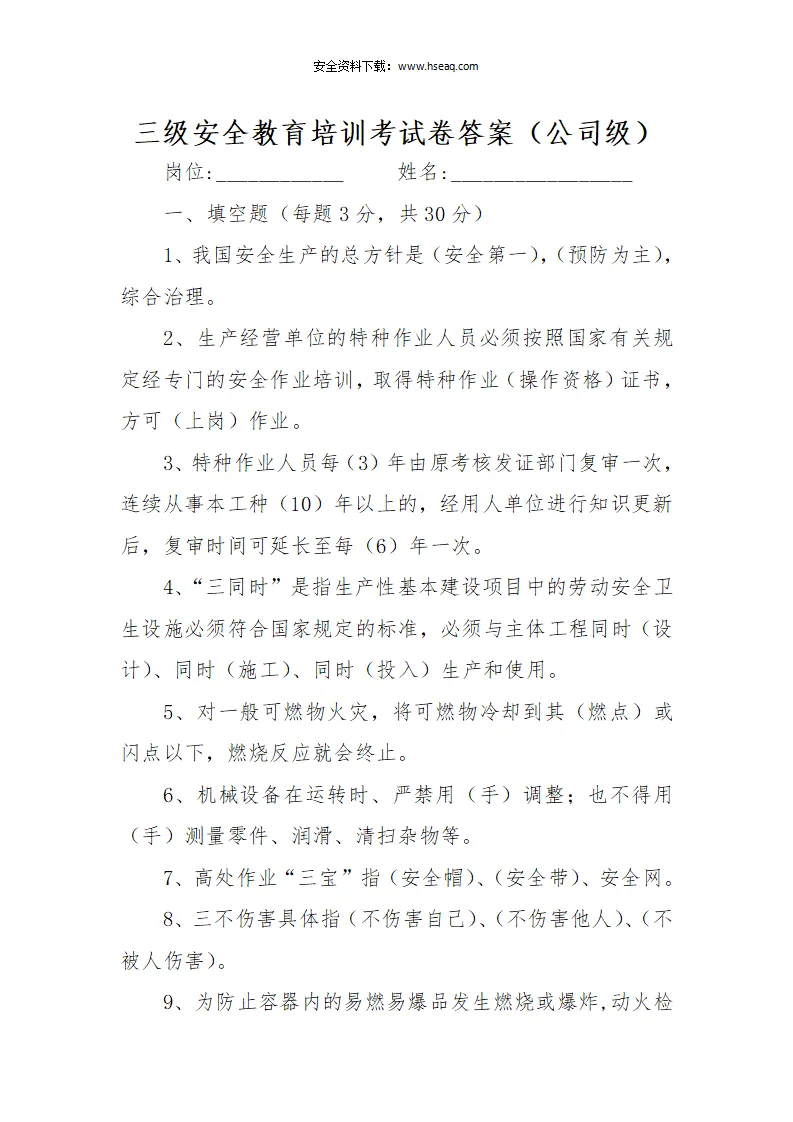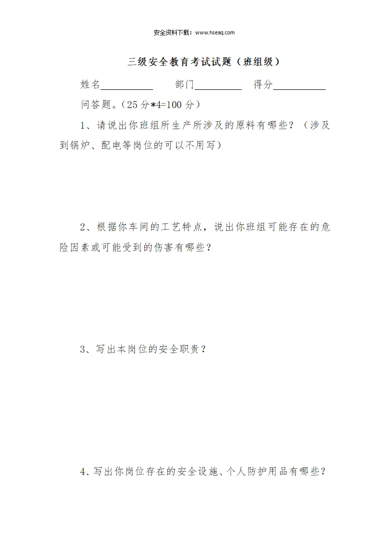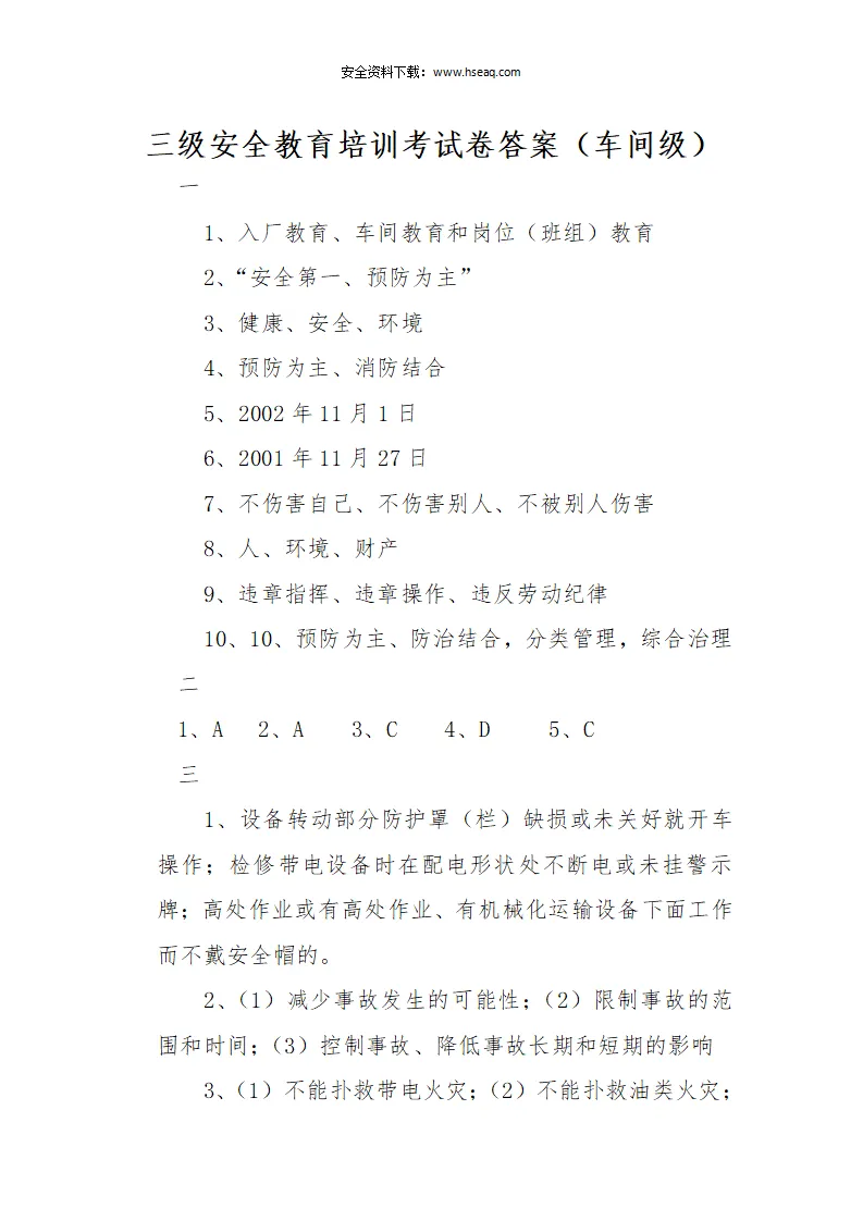 Word |【12】68-三级安全教育培训考试试卷及答案(公司车间班组)