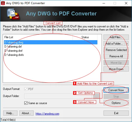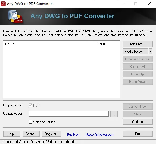 有了它,你完全可以在不需要AutoCAD的情况下,直接把dwg文件批量转换为pdf格式进行阅读查看。它支持转换任意数量的DWG、DXF、DWF格式文件,从资源管理器里拖拽文件到列表就行,操作非常便捷。