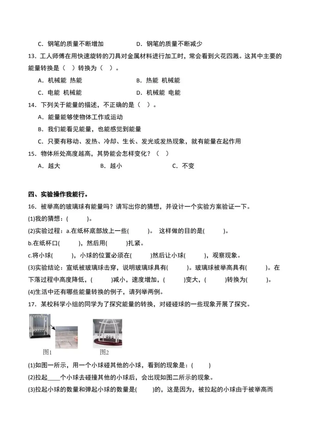 青岛版六年级下册科学第四单元测试卷(电子版可打印附答案)