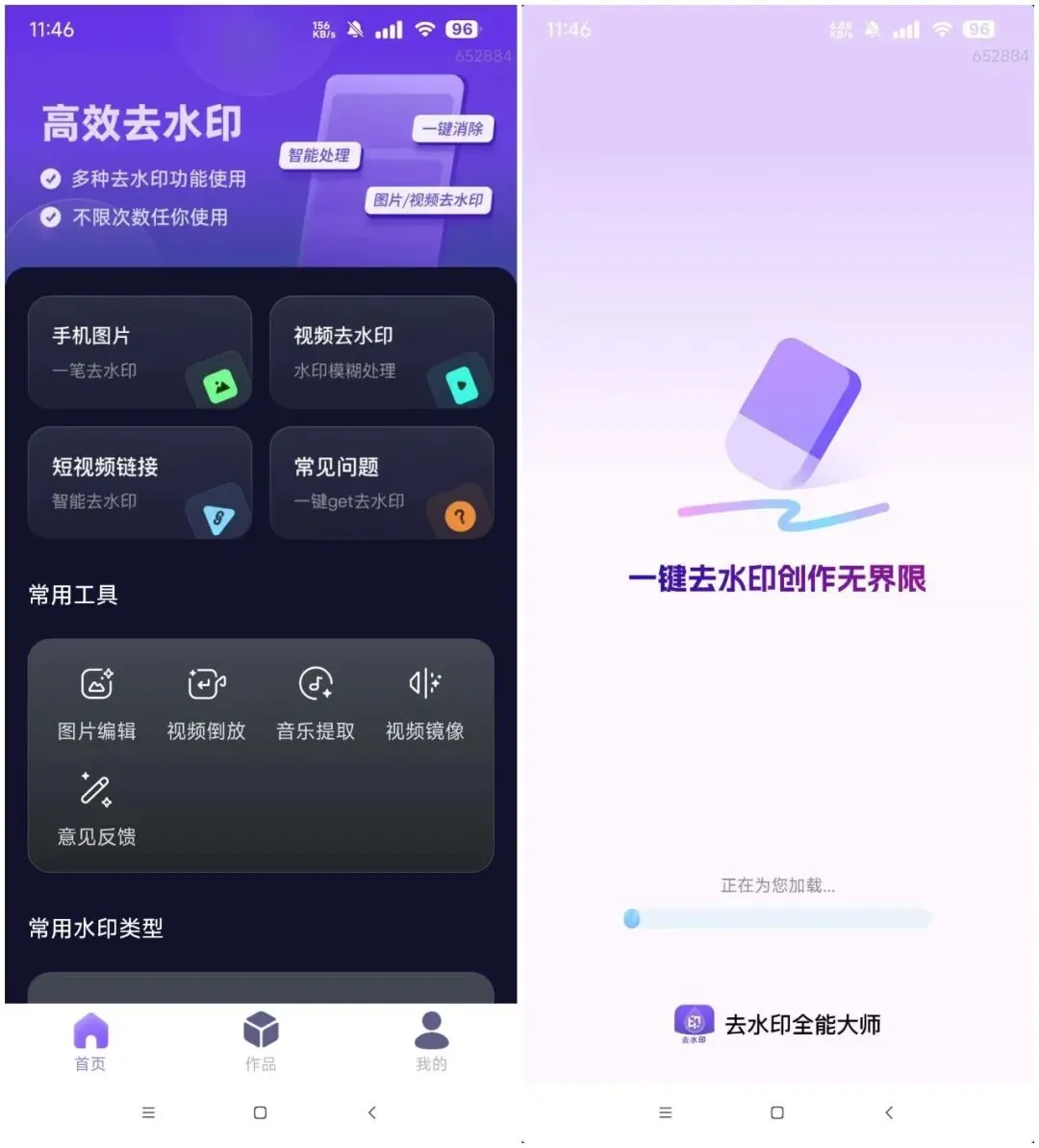 清爽的手机去水印软件,支持视频、图片等去水印操作,同时还可以添加水印,功能强大,一键操作就可以直接编辑处理