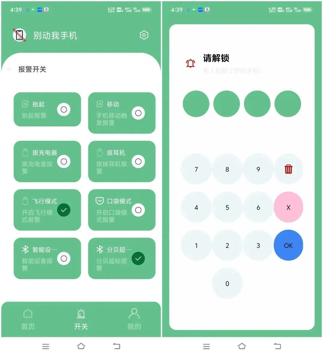 只要开启移动感应模式,手机一旦在静置超过5秒后发生未经授权的移动,应用会立刻启动警报系统,提醒您留意手机安全。无论是网吧激战还是餐馆小聚,您的手机都能得到贴心的守护。