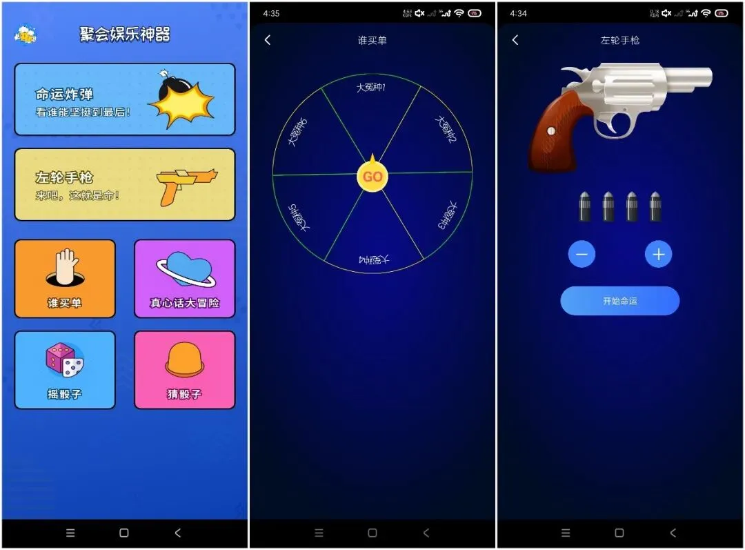 这是一款好玩的喝酒聚会小工具。喝酒露营线下玩,边喝边玩真刺激!小心一触即炸哦,谁来喝酒天注定!真话冒险小转盘,谁能坚持到最后!紧张刺激掷骰子,看谁倒霉被安排!
