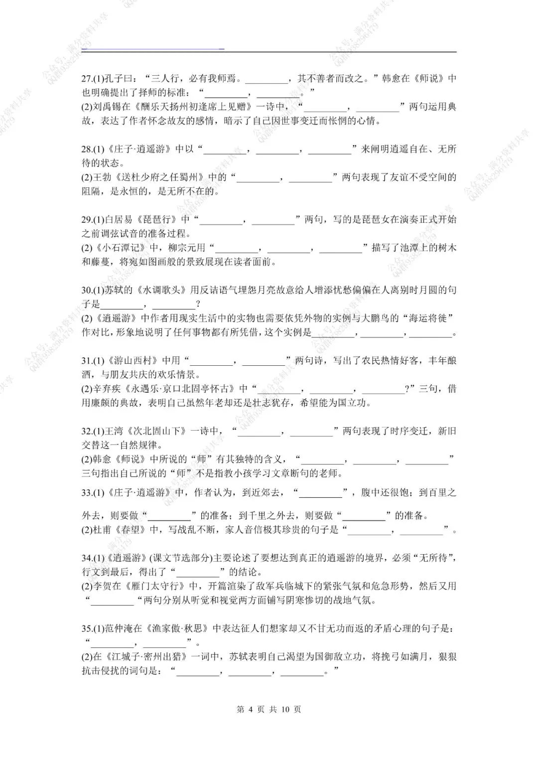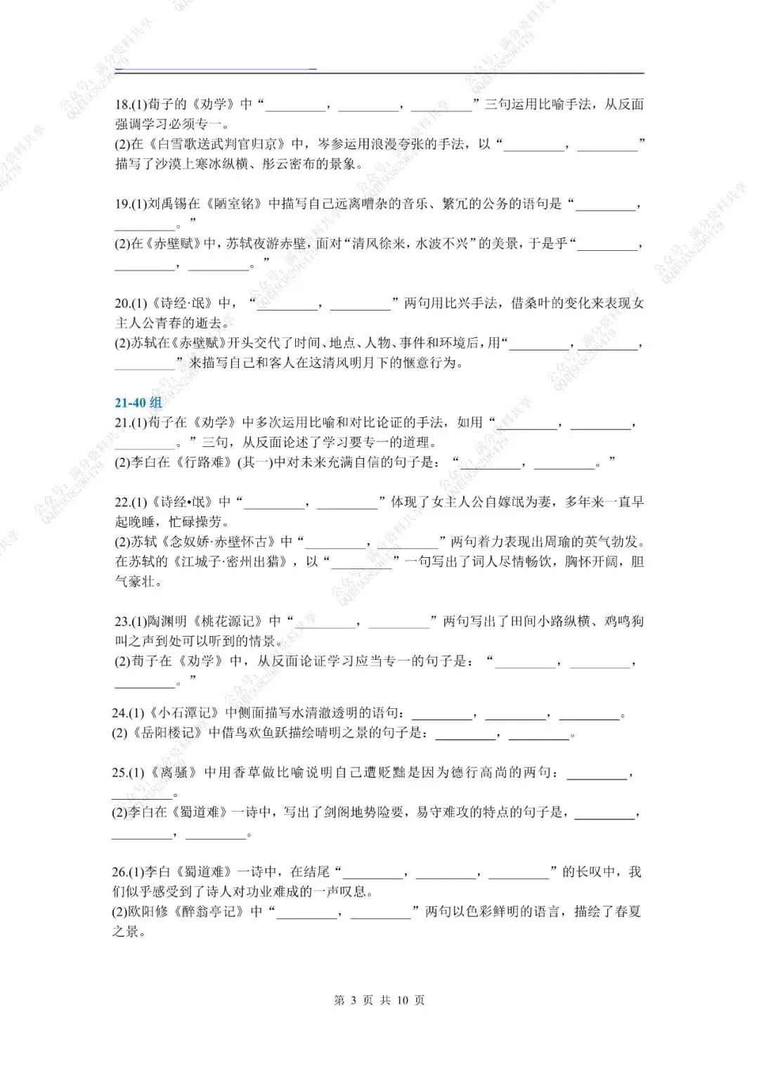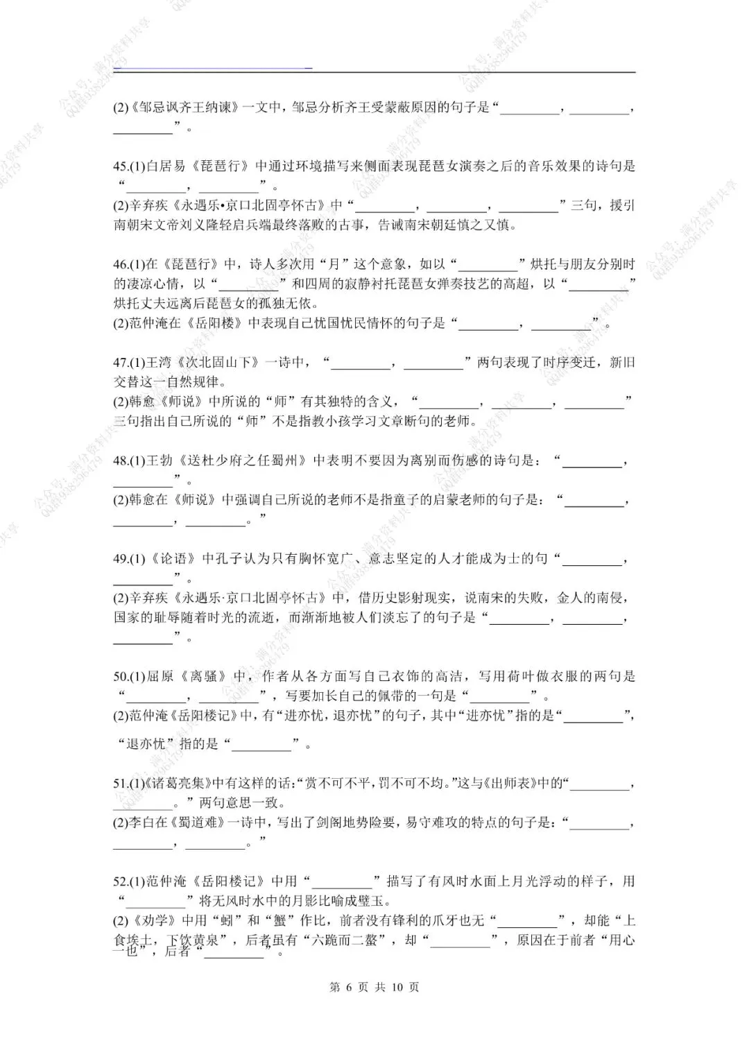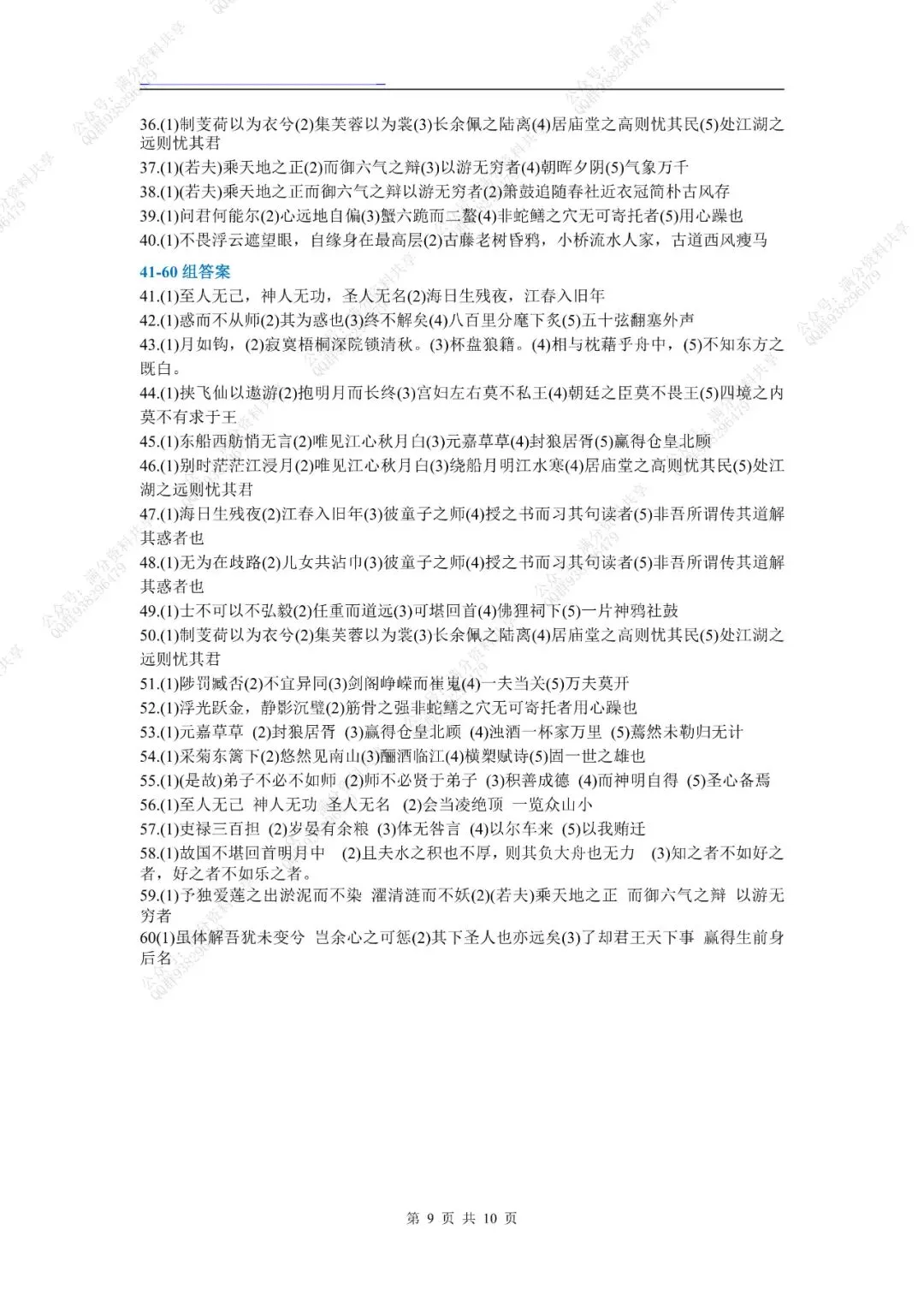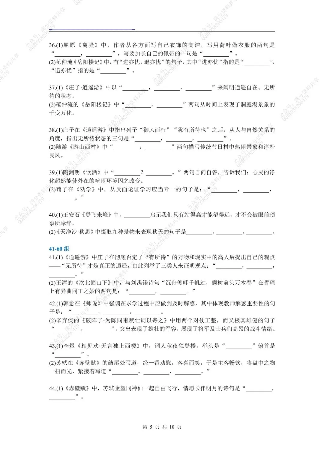 高考名句默写60组考前强化训练(pdf分享) 点击图片可观看高清版,文末有获取打印版方式 领取完整电子版: ①:点一点右下角的“赞”和“在看”,感谢! ②:点击“关注”回复“高中资料”获取资料 点击下方“公众号”关注,可以进入主页哦!