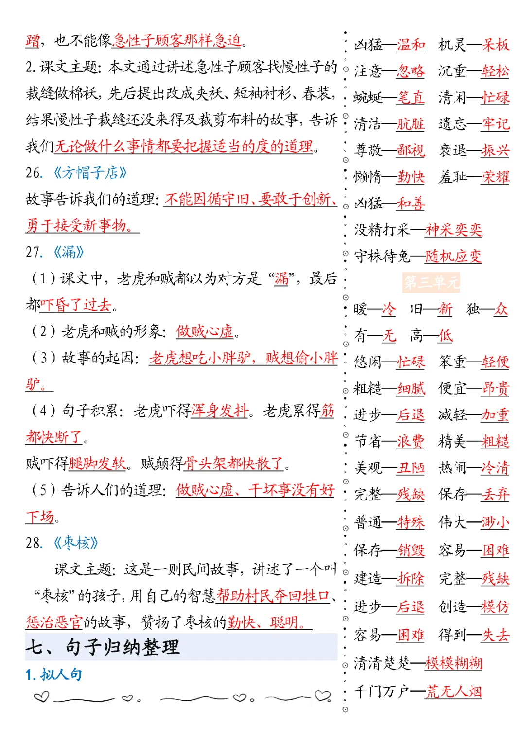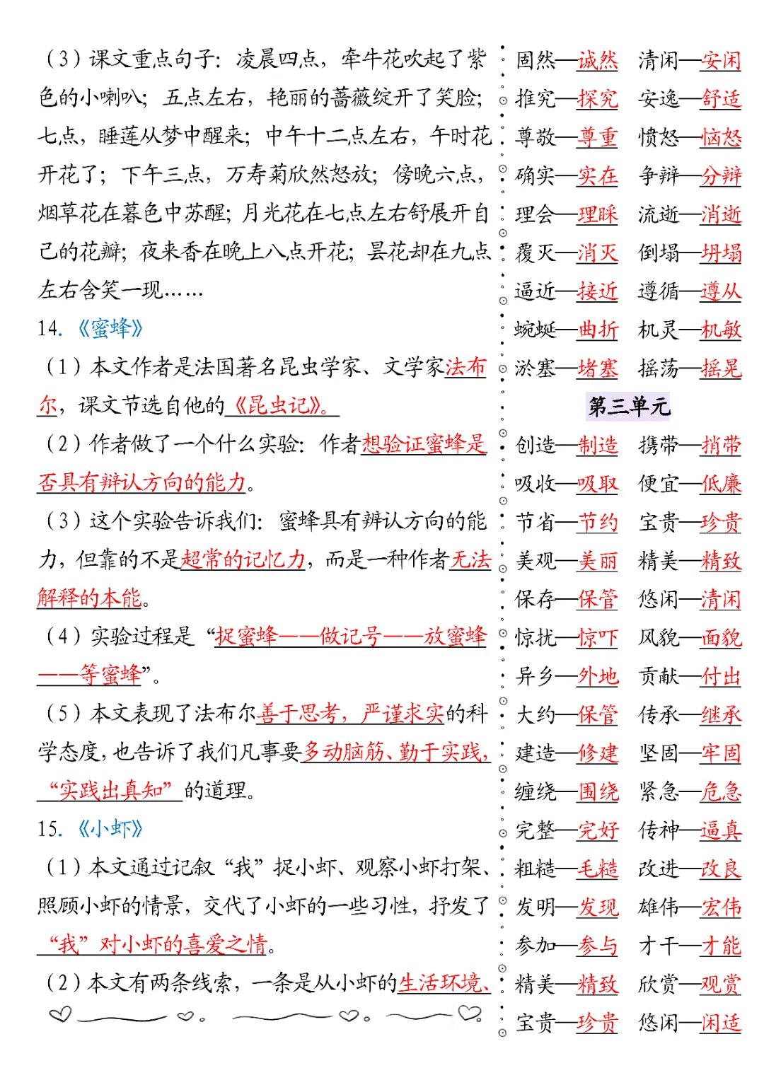 三年级下册语文期末必背知识点默写单|电子版可打印