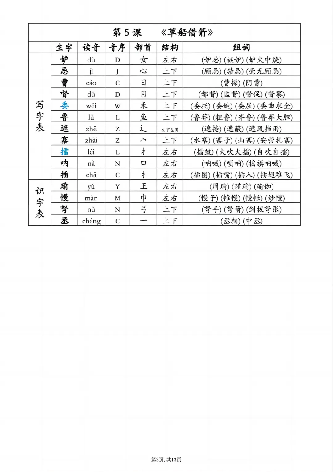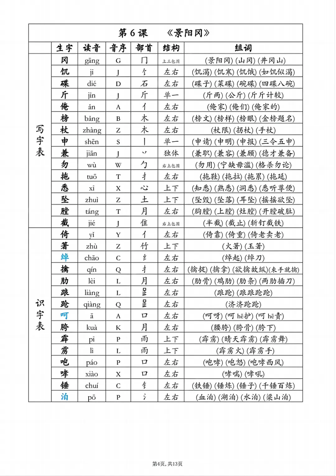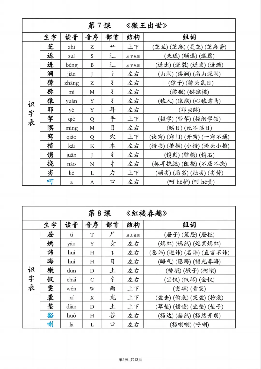 本期给大家整理的是26年五年级语文下册【生字组词课课贴】,电子版可打印,需要的家长可以打印给孩子练习巩固。