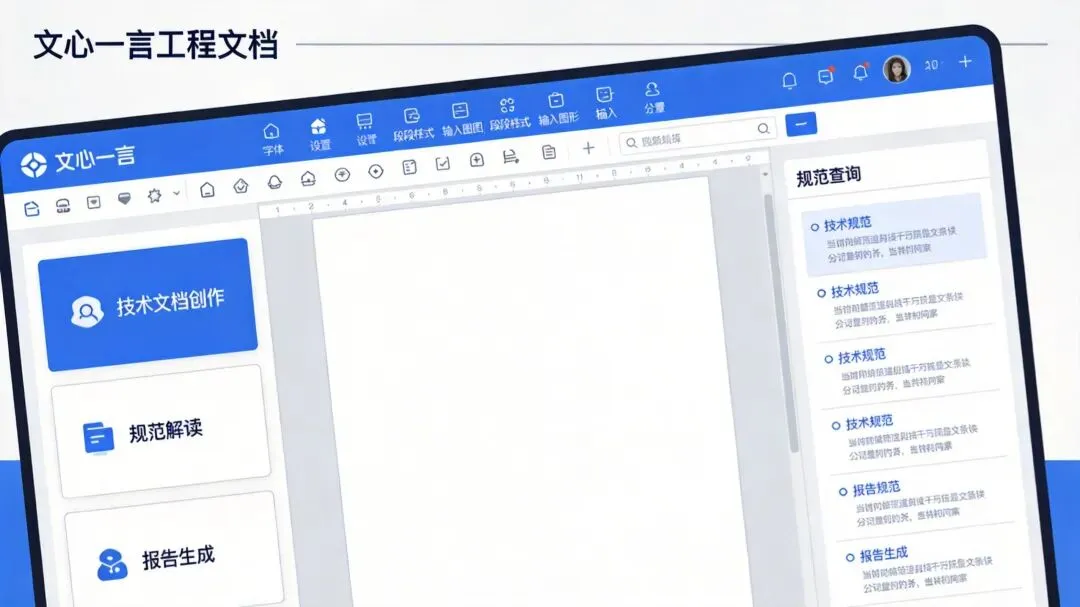 文心一言工程文档界面:整合技术文档创作、规范解读、报告生成三大核心功能