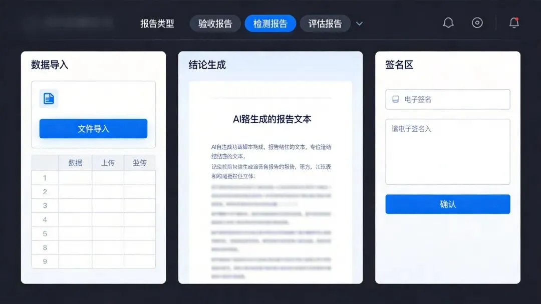 工程报告自动生成界面:验收报告、检测报告、评估报告一键生成