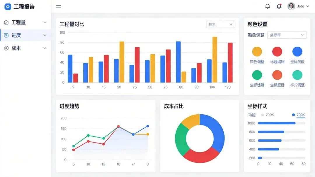 • 支持柱状图、折线图、饼图等类型 -