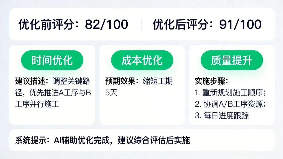 技术方案智能优化:AI对方案的时间优化、成本优化、质量提升建议
