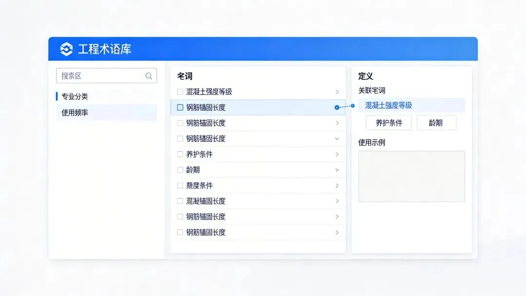 工程术语库:专业术语的智能匹配和解释,支持术语检索、关联术语、使用示例