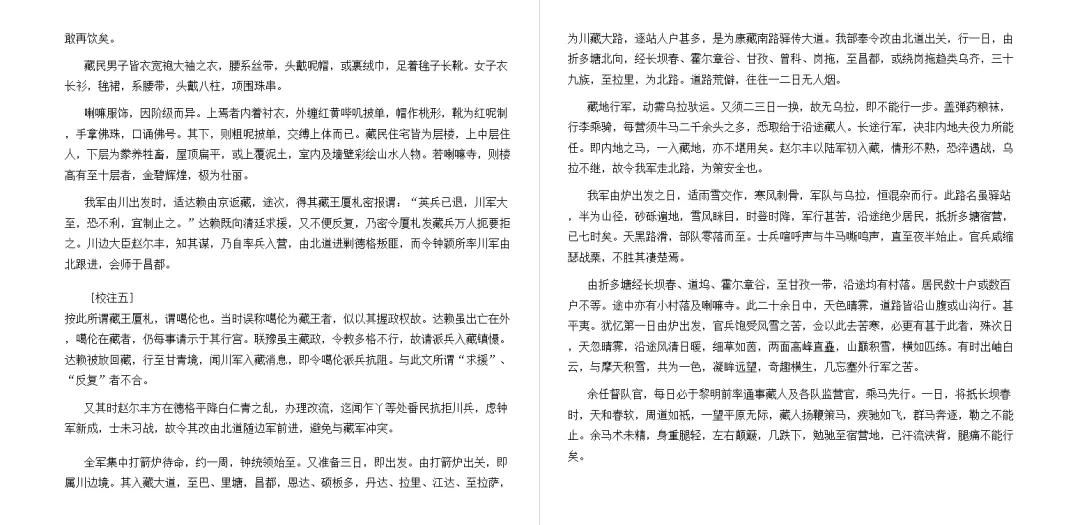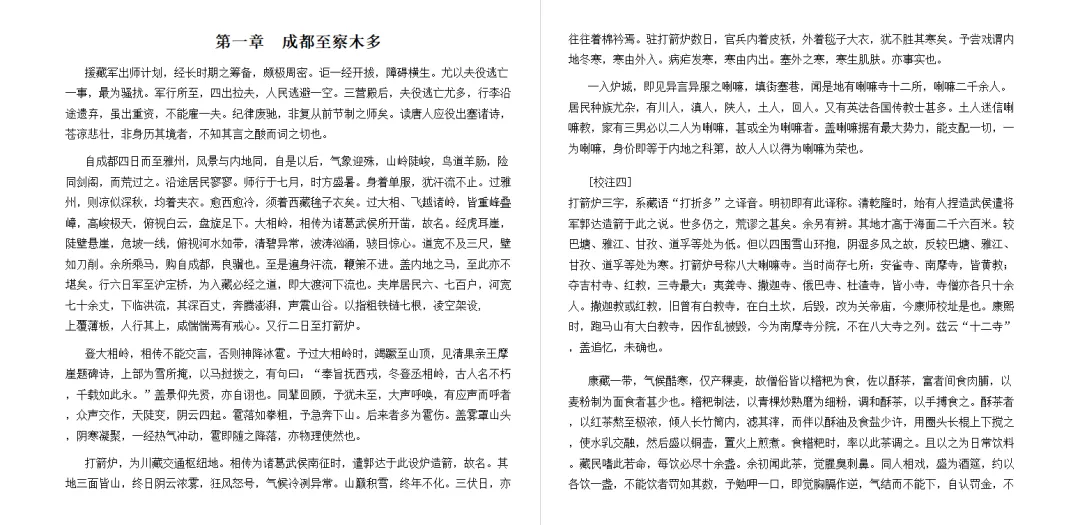 文字洗练却字字泣血,既有 “雅鲁藏布江藤桥飞渡” 的奇景,也有 “僵尸道旁,相对一叹” 的惨状;既记录了英俄觊觎西藏的乱世风云,也描绘了藏地独特的民俗风情。它兼具《水经注》的写景功力与班马之笔的叙事张力,更是研究清末藏地的珍贵史料。