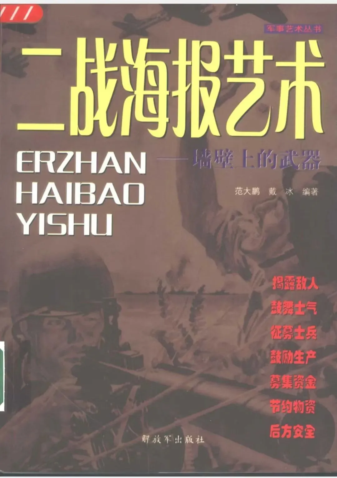 《二战海报艺术:墙壁上的武器》由范大鹏、戴冰编著,解放军出版社于2005年1月出版,是“军事艺术丛书”系列中的重要作品。全书共198页,定价36.00元,ISBN为7-5065-4773-2。书中收录了200余幅珍贵的二战海报藏品,以图文并茂的形式呈现给读者。