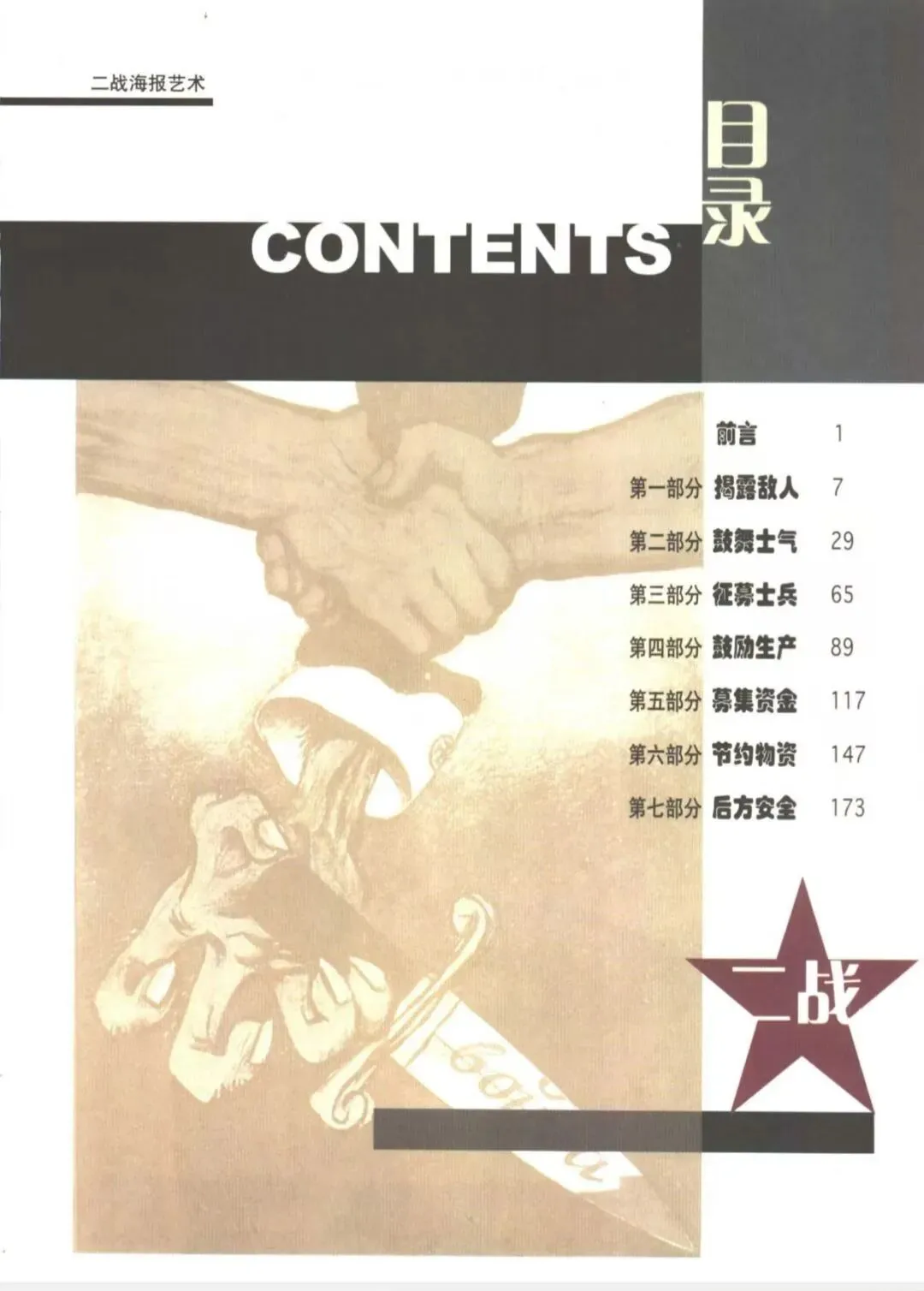 本书最显著的特点是其清晰的功能分类体系。编者将二战海报按宣传目的划分为七个部分,这种分类方式不仅便于读者理解,也深刻揭示了战争宣传的多维面向: